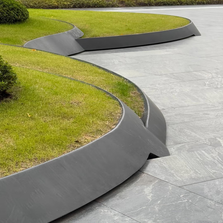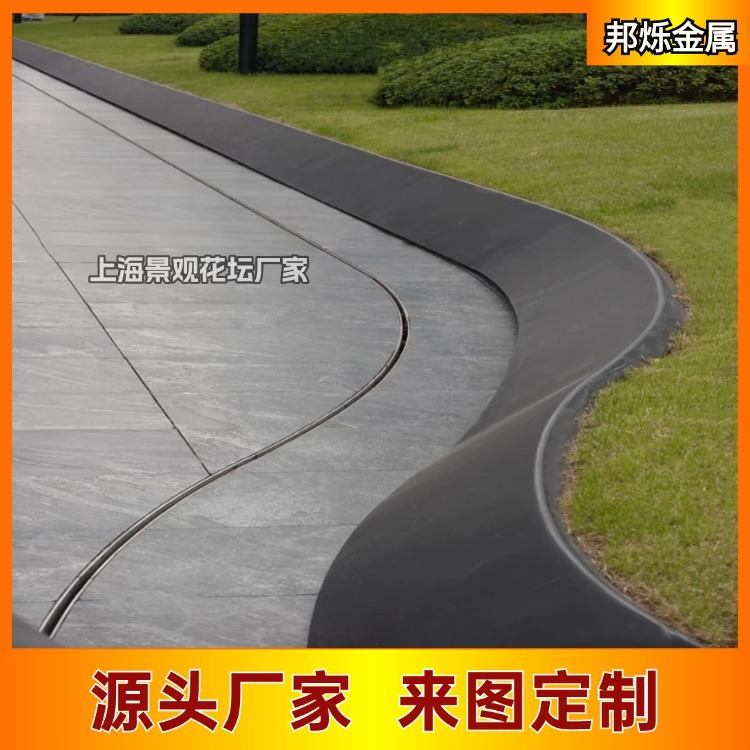 Ландшафтный изогнутый цветочный грядка на заказ, изготовленный на фабрике в Шанхае, из нержавеющей стали, уличный водный элемент, цветочный пруд, металлический стул-сиденье, комбинация цветочного ящика.