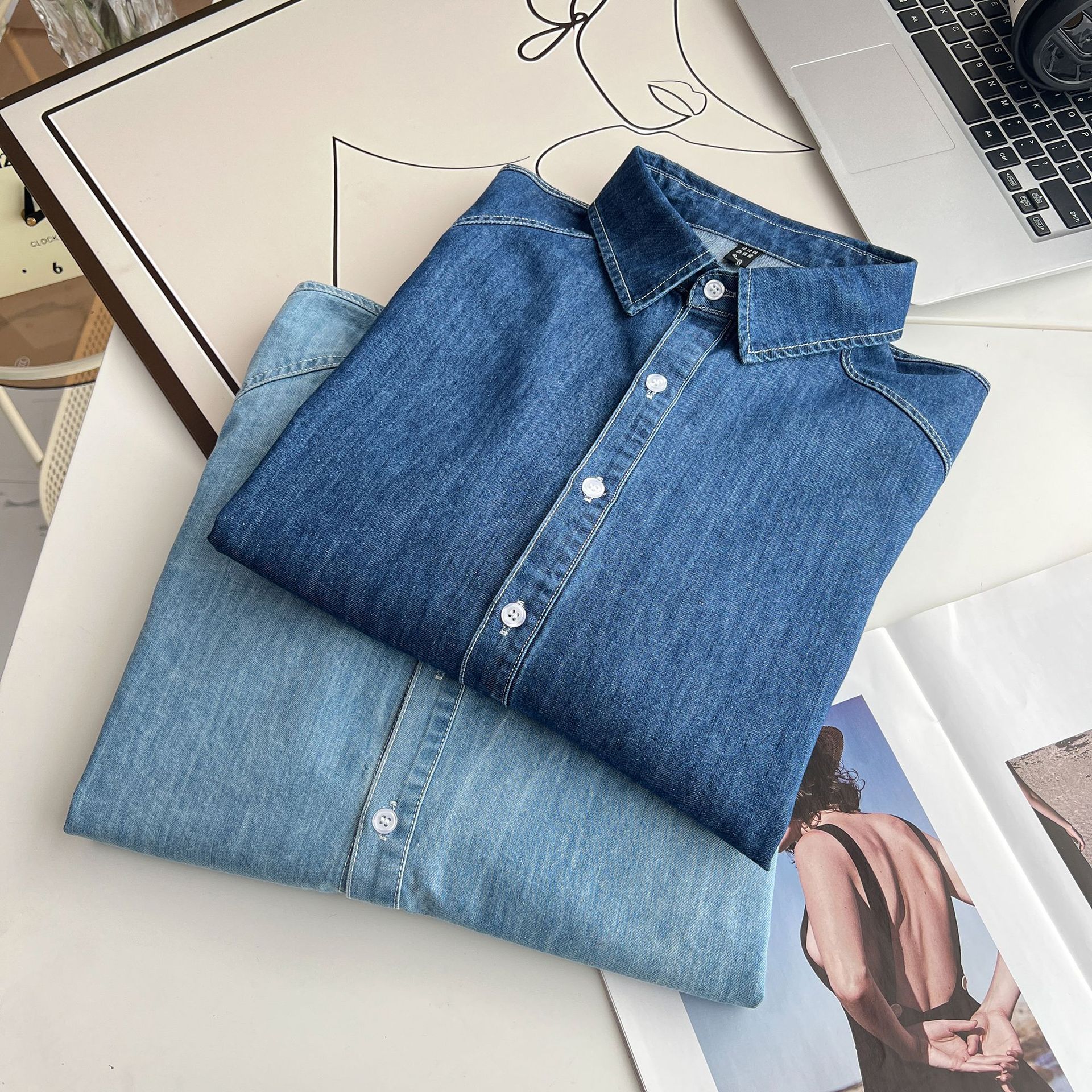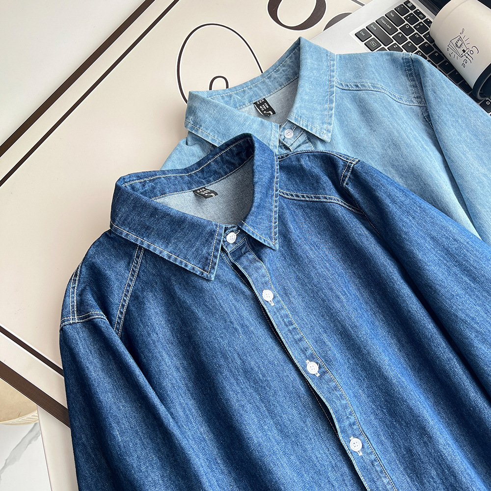 Большой размер женская рубашка с длинными рукавами весной и осенью новый 200 фунтов толстая сестра дикий повседневный простой джинсовая рубашка 8217