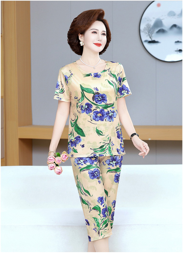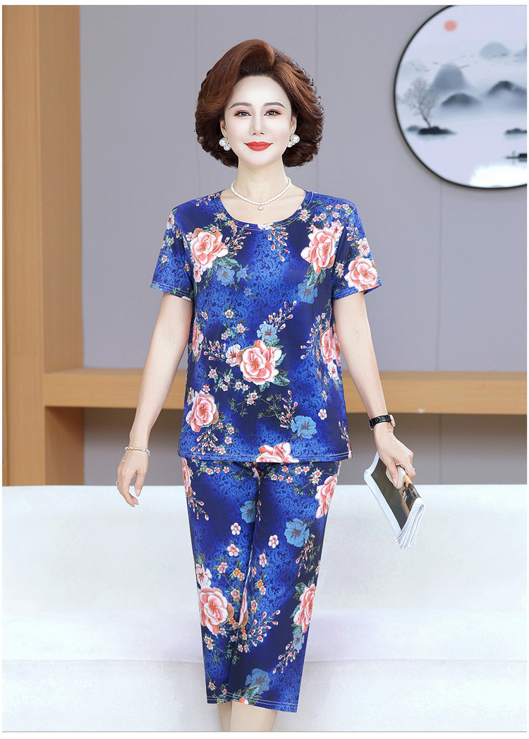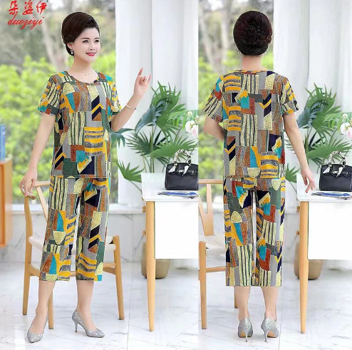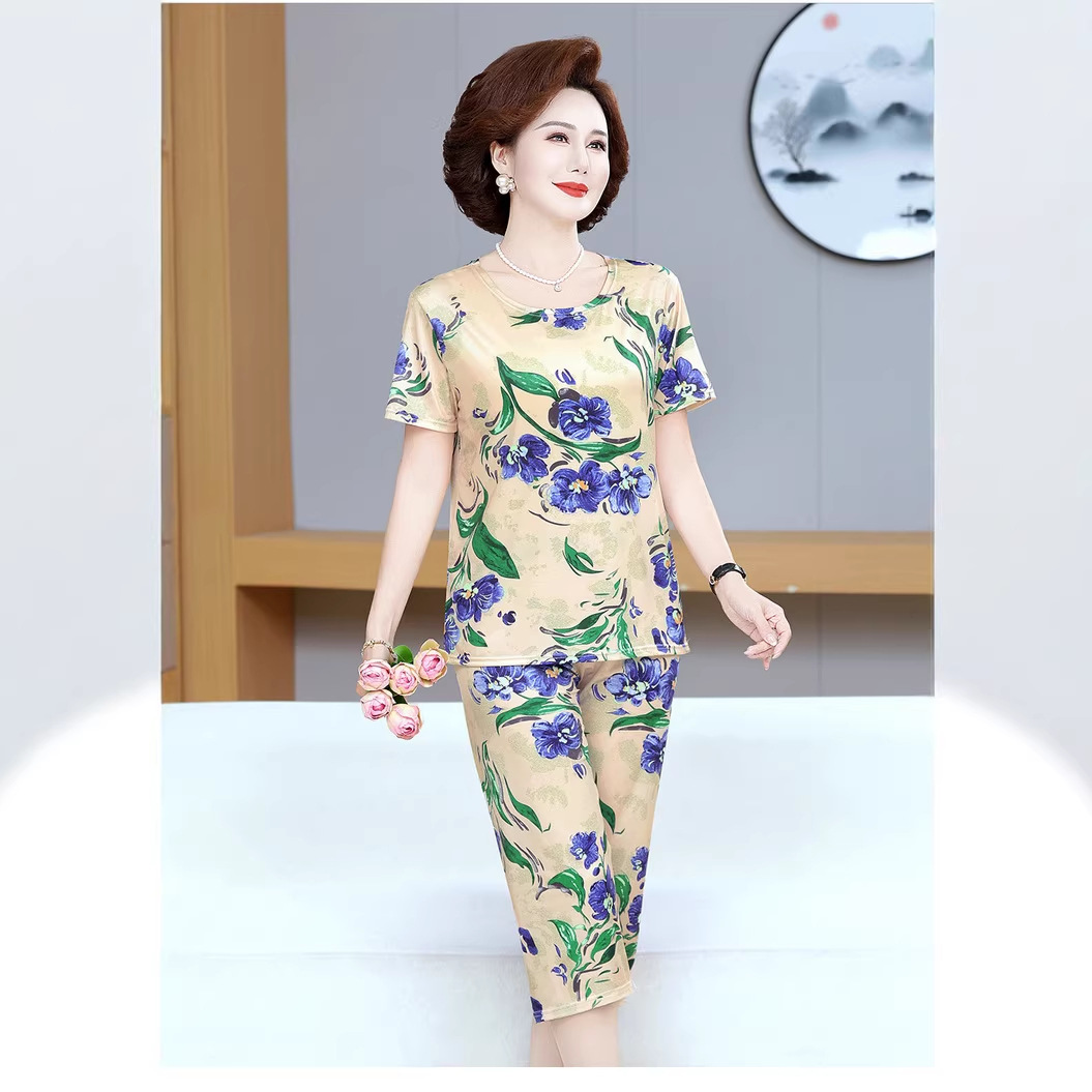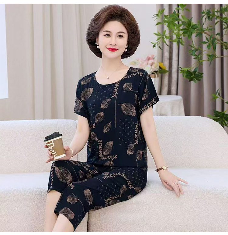 Мама пижама Старушка летняя средняя и пожилая мама одежда летняя женская футболка с короткими рукавами костюм бабушки костюм