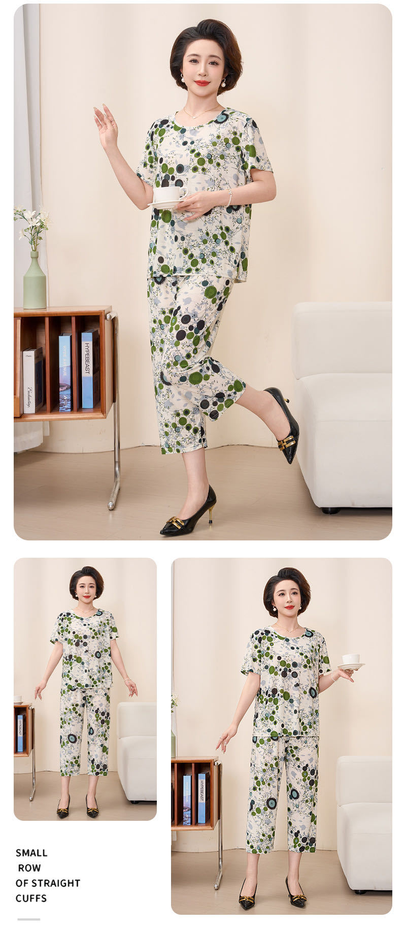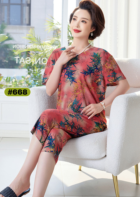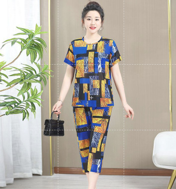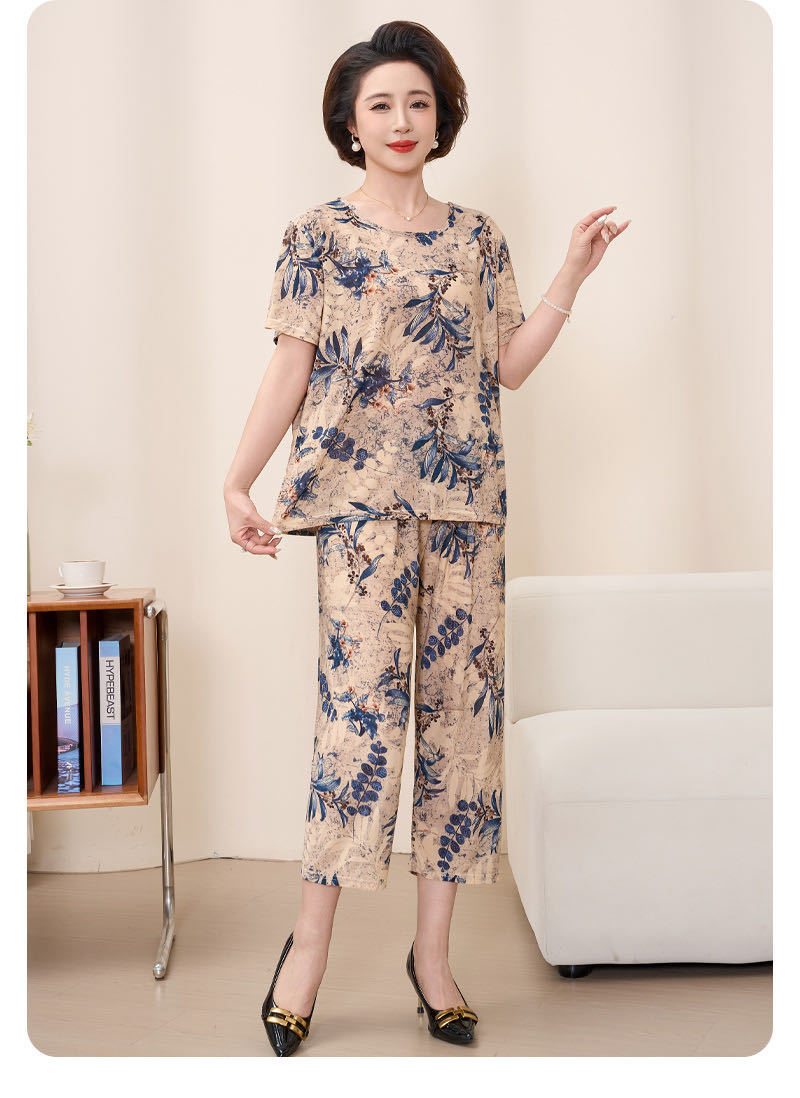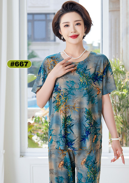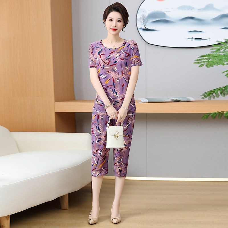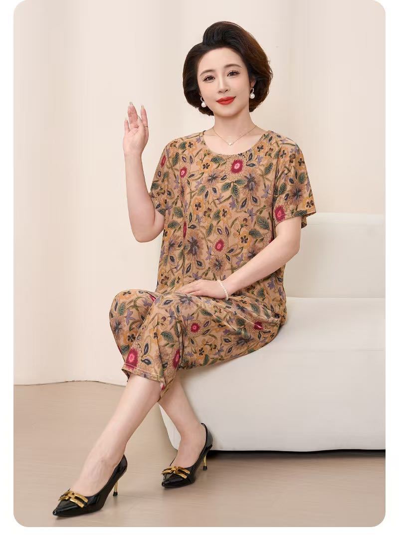 Мама пижама Старушка летняя средняя и пожилая мама одежда летняя женская футболка с короткими рукавами костюм бабушки костюм