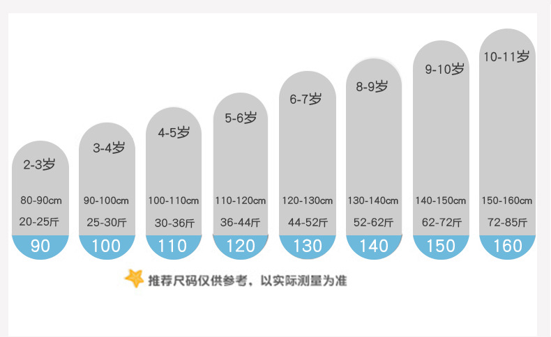 90cm; 100cm; 110cm; 120cm; 130cm; 140cm; 150cm; 160cm