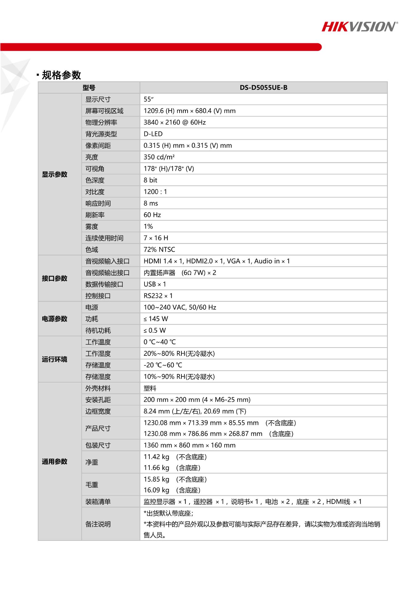 Hikvision 55-дюймовый 4K монитор безопасности DS-D5055UE-B