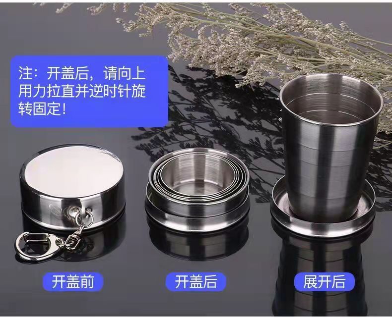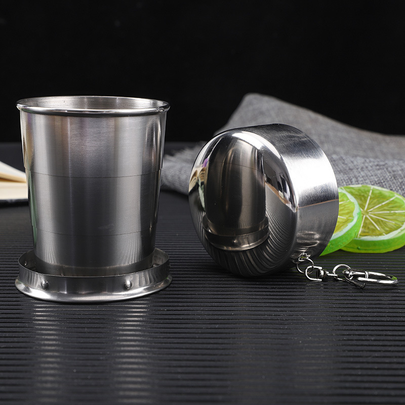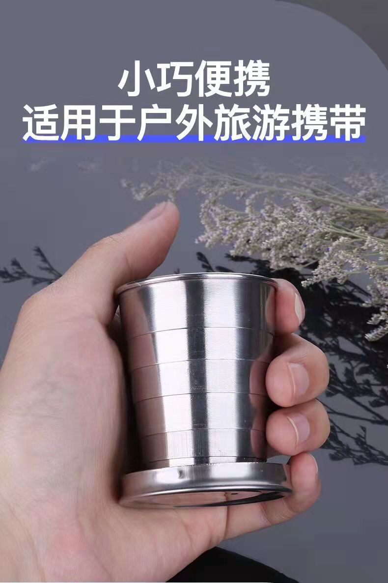 Складная чашка из нержавеющей стали, телескопическая чашка, дорожная чайная чашка, посуда для кемпинга, чайный набор, портативная маленькая чашка для вина, чашка для воды, походная чашка