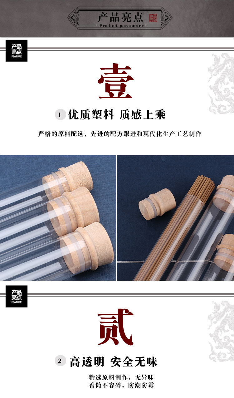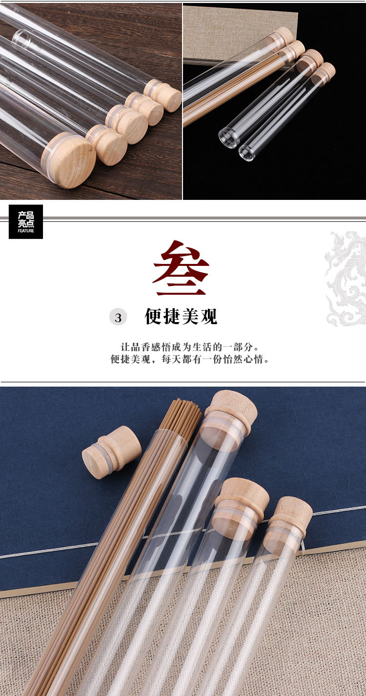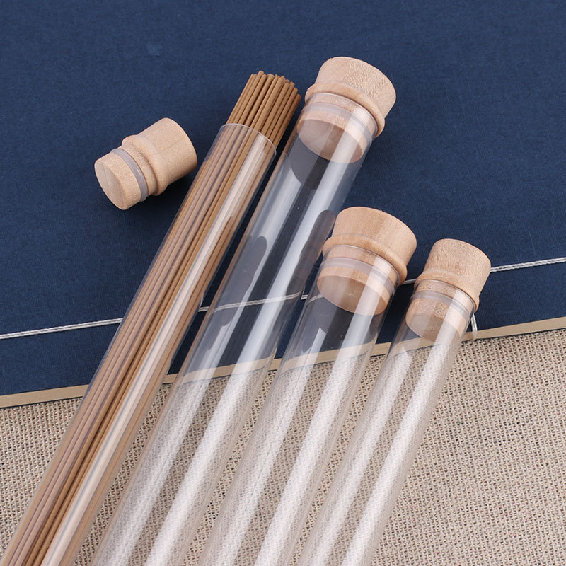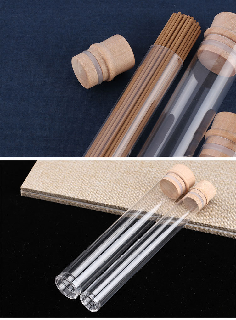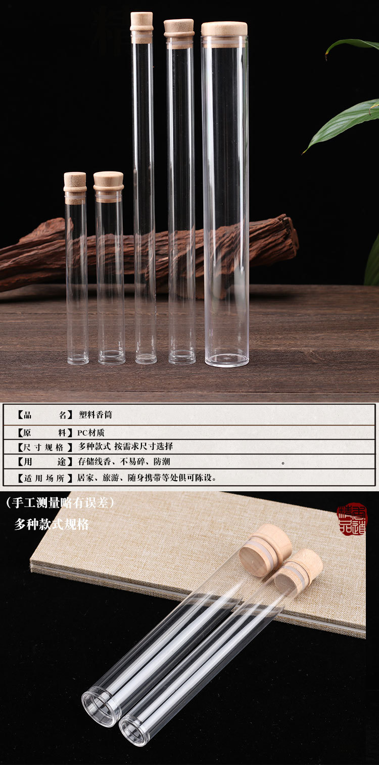 Прозрачная пластиковая трубка для благовоний, пробка из цельного дерева, упаковочная трубка для благовоний для сна, домашняя коробка для хранения благовоний, бочка для благовоний из сандалового дерева