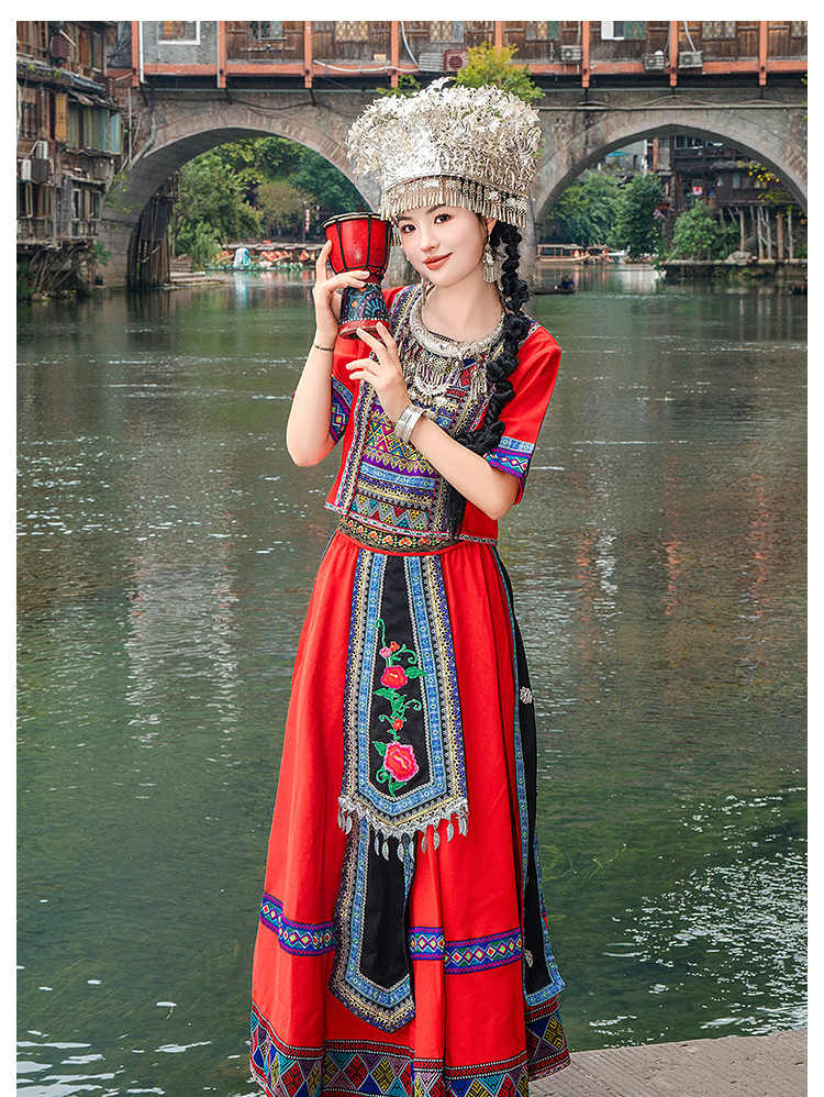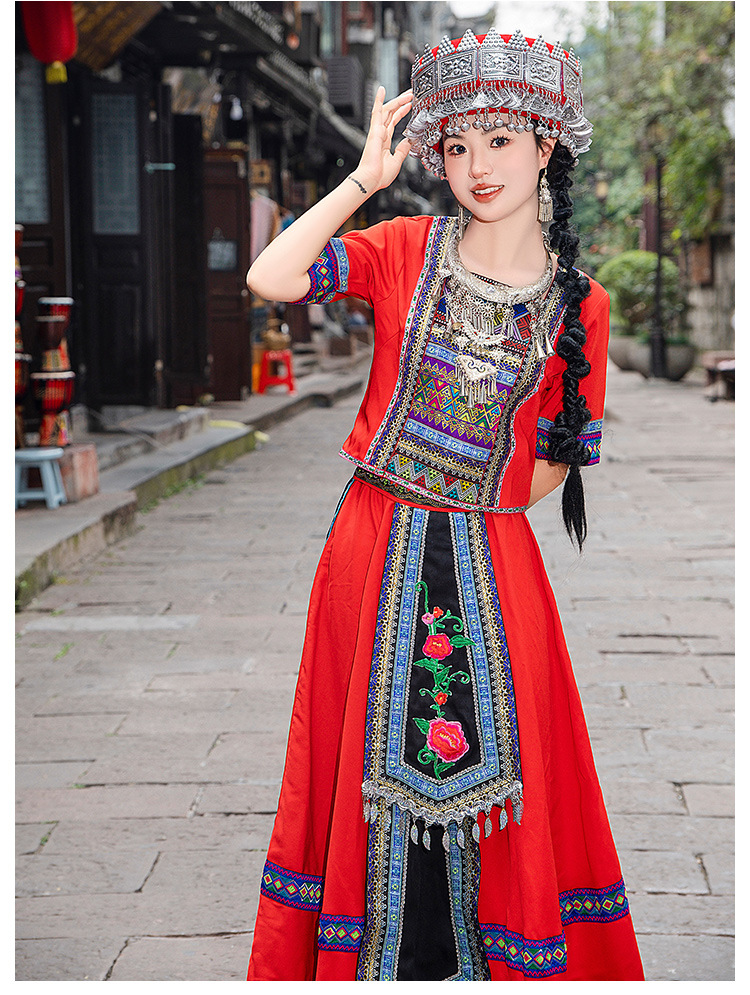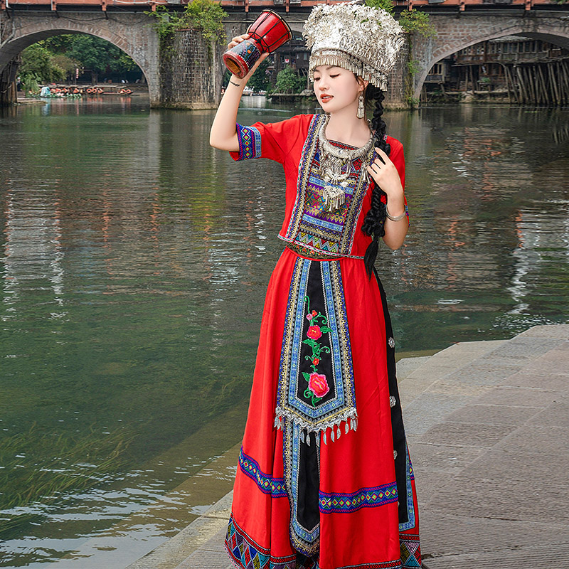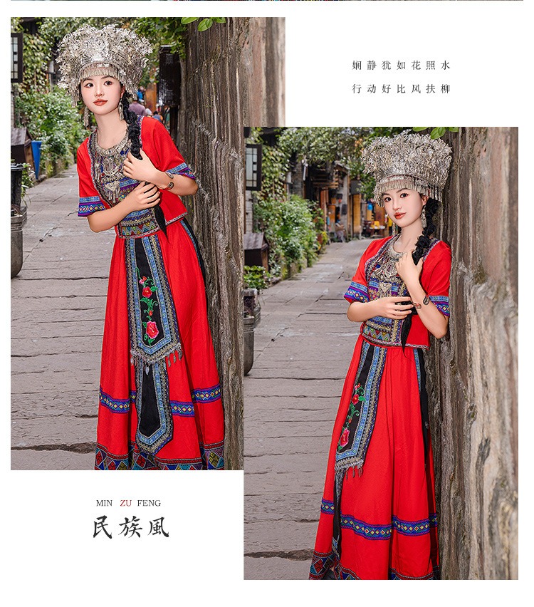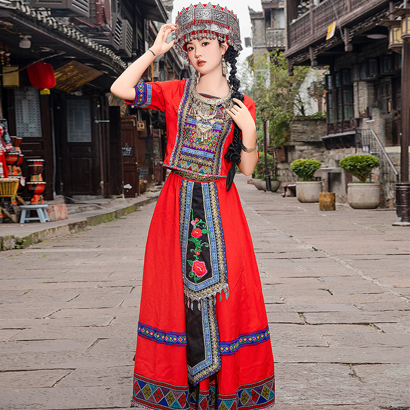 Костюмы меньшинств Женщины Мяо Гуанси Чжуан Яо Йи Йи Шоу Костюмы Туцзя Путешествие Фотосъемки Костюмы