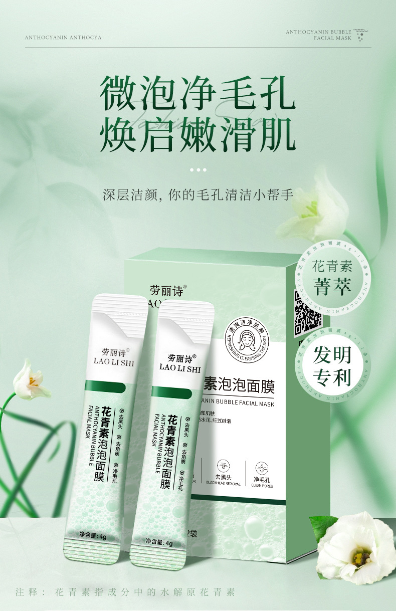 Лауристская антоцианидная пенистая маска для удаления угрей и закрытого рта глубоко очищает и сокращает поры, увлажняет и отшелушивает