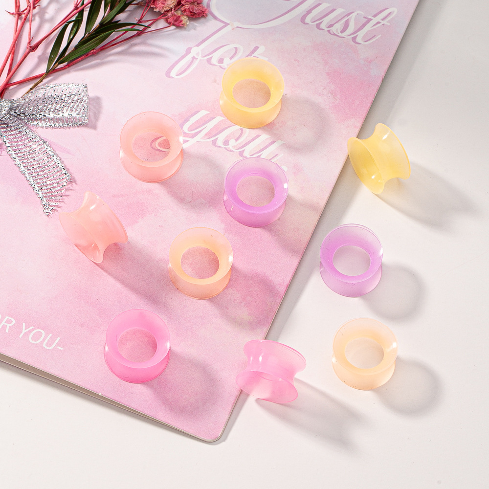 Силиконовые расширители для ушей Amazon AliExpress, 9 мм, ультратонкие, светящиеся, конфетных цветов, для пирсинга ушей и украшения ушной раковины