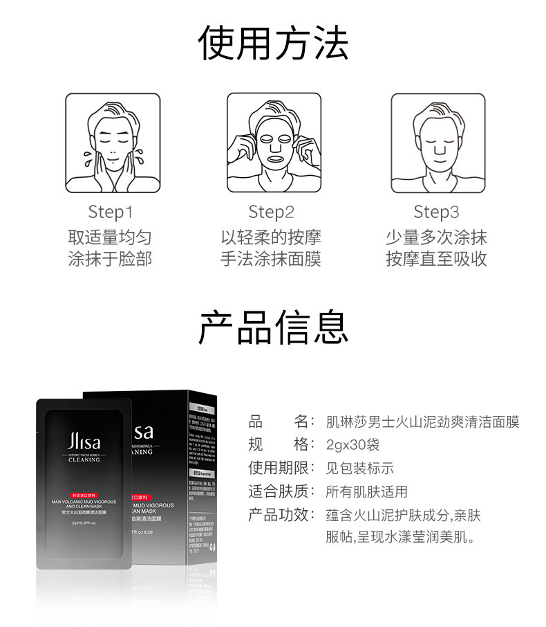 Ms. Linda мужская вулканическая грязь освежающая очищающая маска 2gX30 мешок