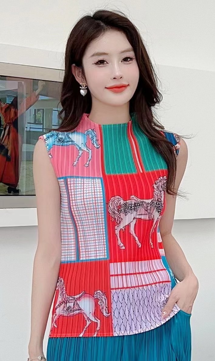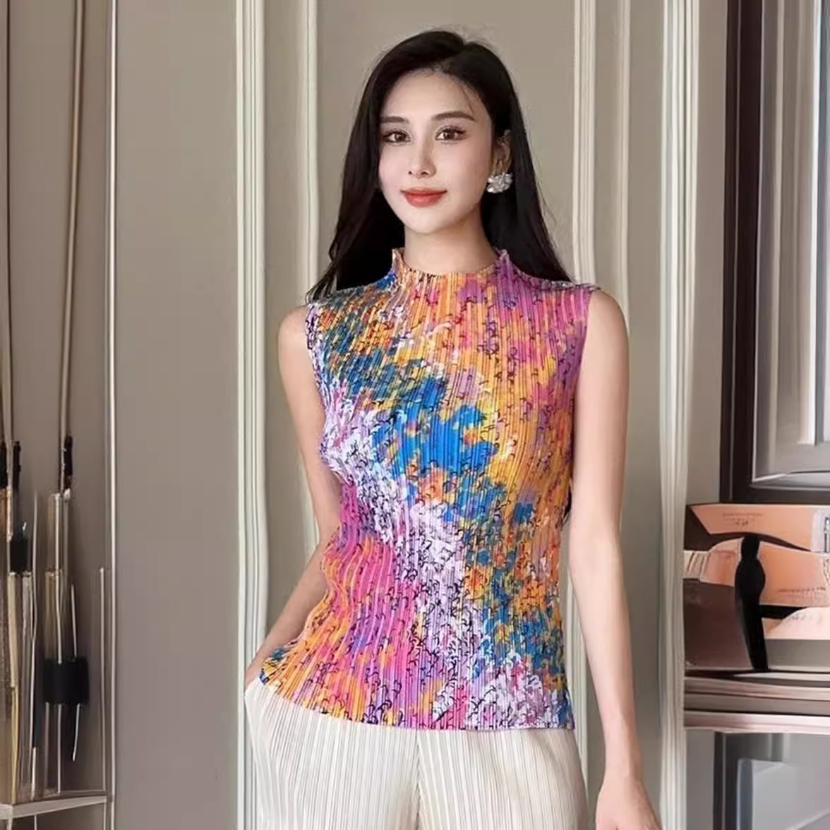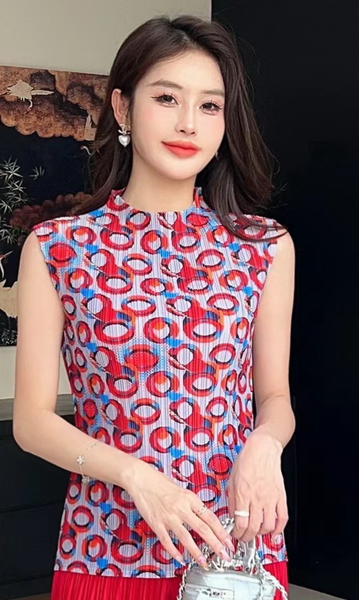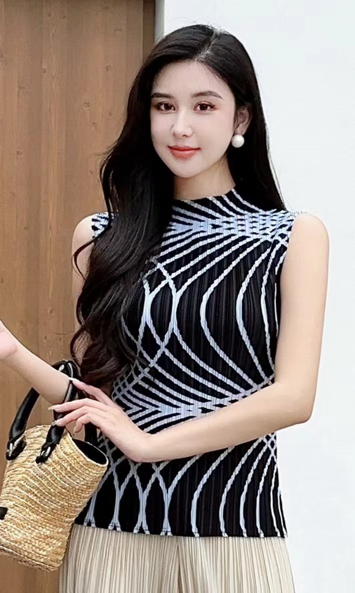 Модная майка с принтом 2024 года, с полувысоким воротником, универсальная и стильная, без рукавов, больших размеров.
