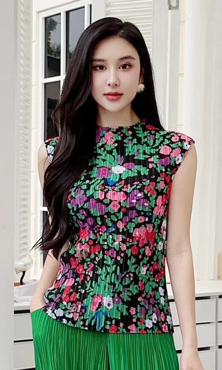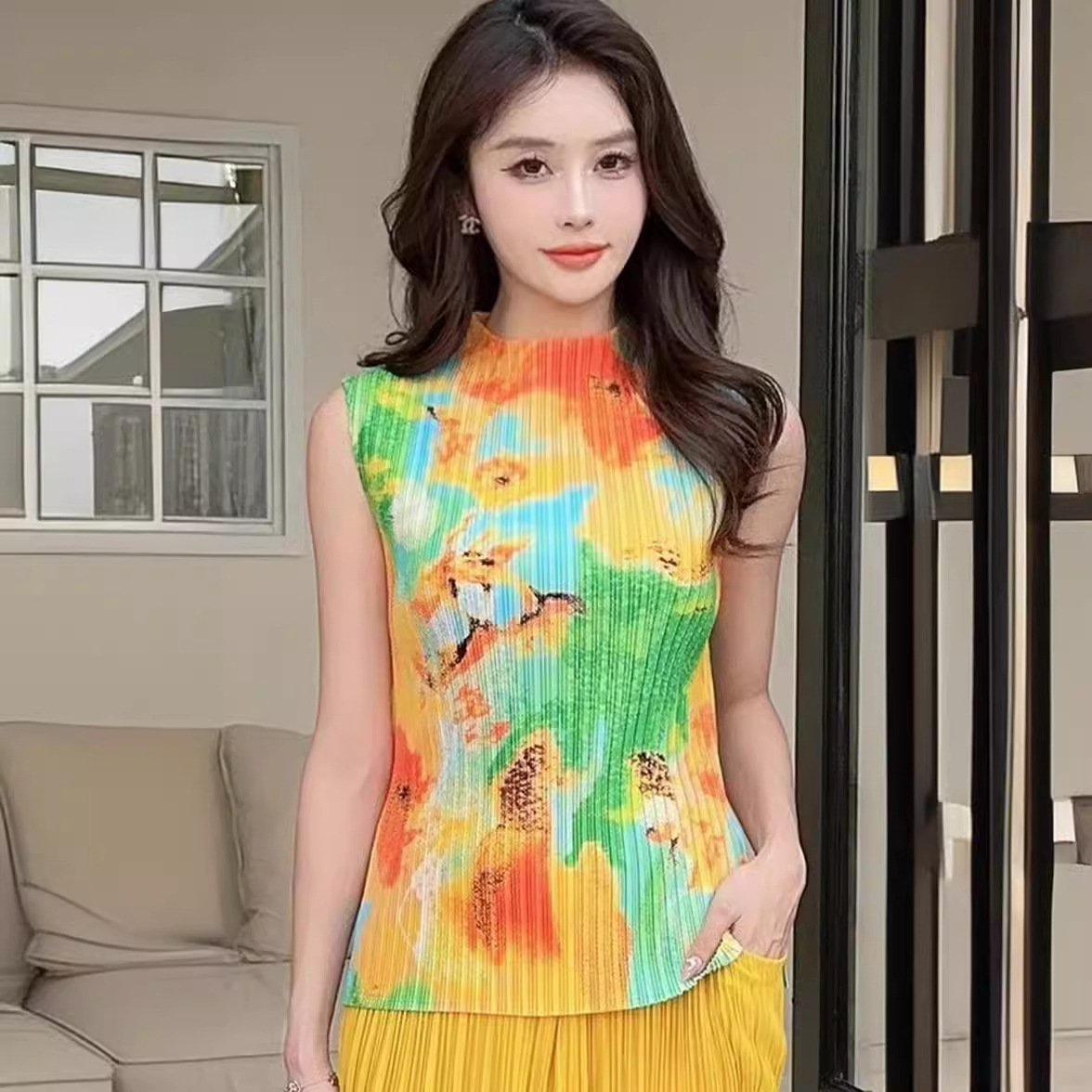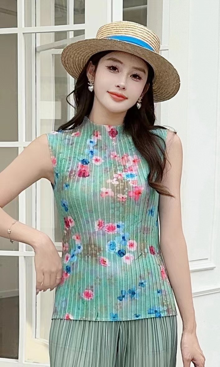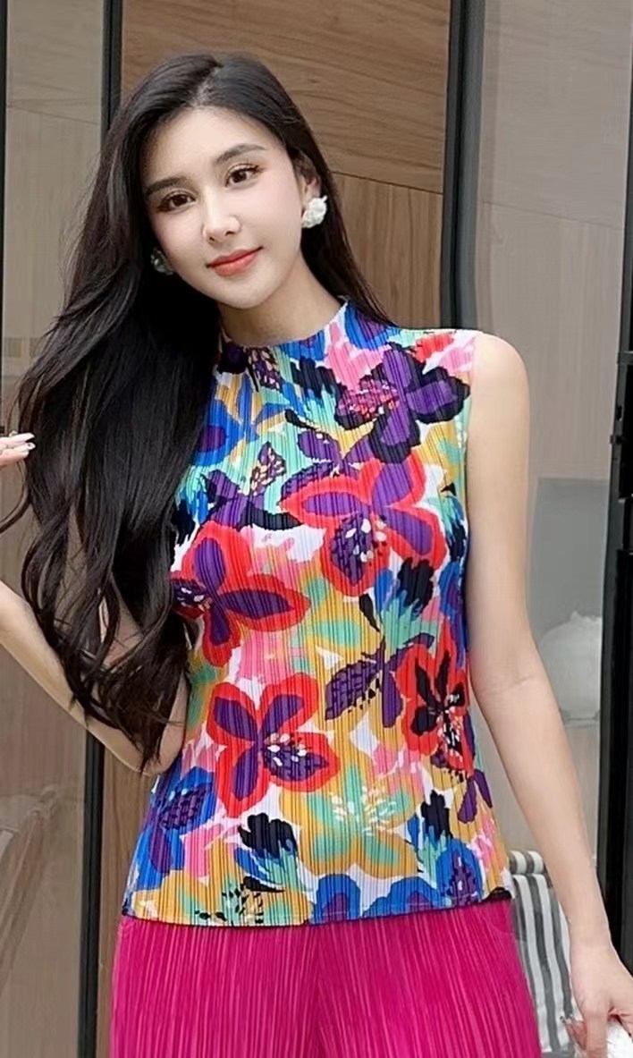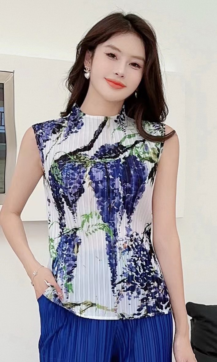 Модная майка с принтом 2024 года, с полувысоким воротником, универсальная и стильная, без рукавов, больших размеров.