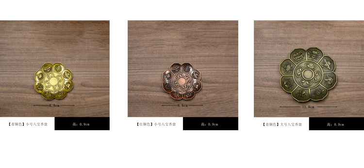 Палочка для благовоний из тыквы; Маленькая ароматическая палочка с каплей воды; Большая вставка для благовоний с каплями воды; Маленькая ароматическая палочка с девятью отверстиями.; Средняя ароматическая палочка с девятью отверстиями; Большая ароматическая палочка с девятью отверстиями.; Палочка для благовоний в форме барабана с пятью отверстиями; Тибетская ароматическая палочка с пятью отверстиями; Латунная подставка для благовоний; Маленькая ваза для благовоний; вставка для сигарет; Очень большая латунная ароматическая палочка с девятью отверстиями [тибетский стиль благовоний]; Очень большая латунная ароматическая палочка с девятью отверстиями [обычный стиль]; Бронзовая тарелка для благовоний в виде цветка сливы [сплав]; Пластина для благовоний цвета красной меди с цветком сливы [сплав]; [Бронза] Маленькая тарелка для благовоний «Восемь сокровищ»; [Цвет красной меди] Маленькая пластина для благовоний с восемью сокровищами; [Бронза] Большая тарелка для благовоний «Восемь сокровищ»; [Цвет красной меди] Большая тарелка для благовоний с восемью сокровищами