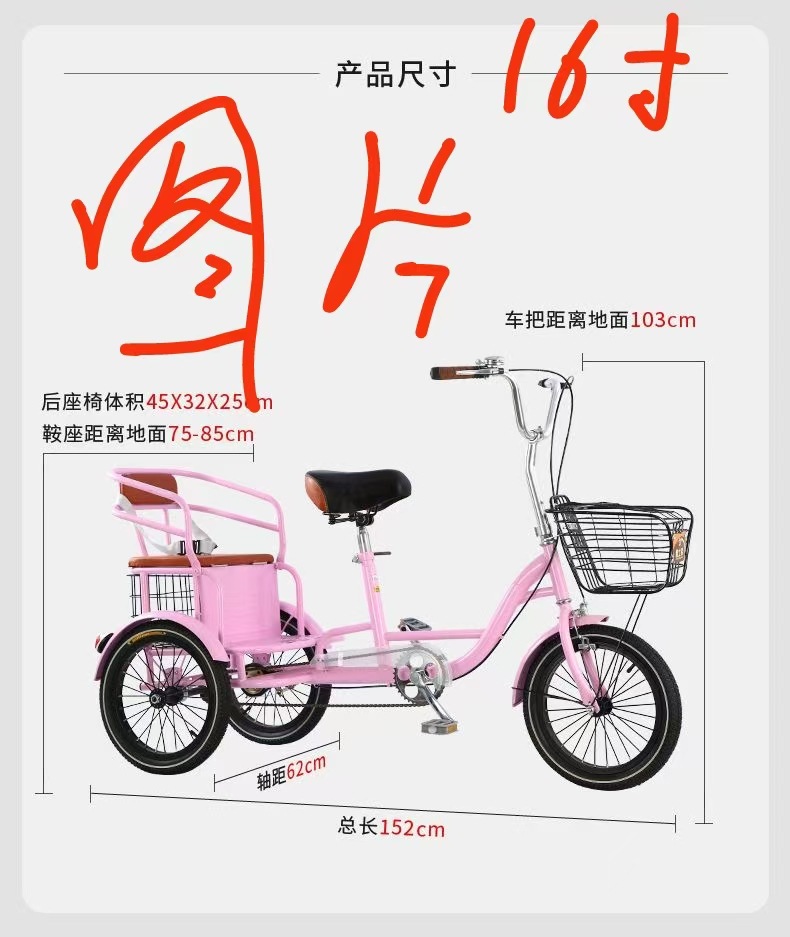 Новый пожилой трехколесный рикша пожилой педали скутер двухместный велосипед для взрослых велосипед с детьми