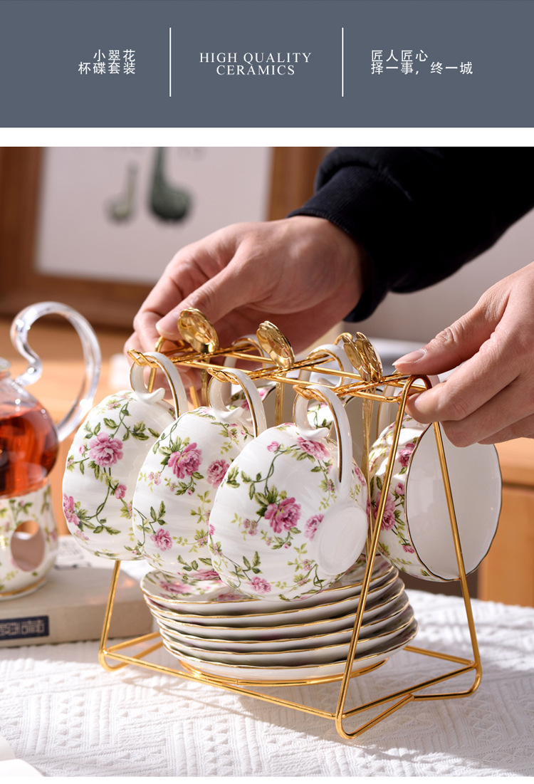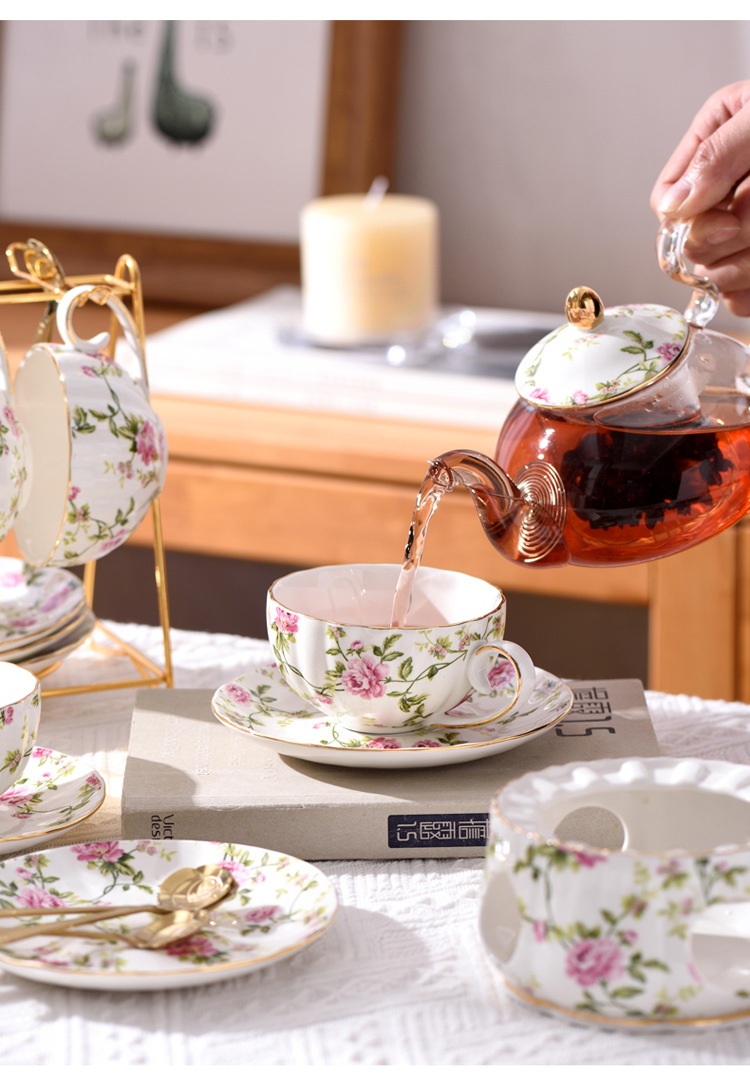 Чайный набор в европейском стиле: фруктовый чай, цветочный чай в пасторальном стиле, цветочный чайник, стеклянная чашка с подогревом и фильтром, керамическая чашка для воды, чашка с блюдцем, чайник для заваривания.