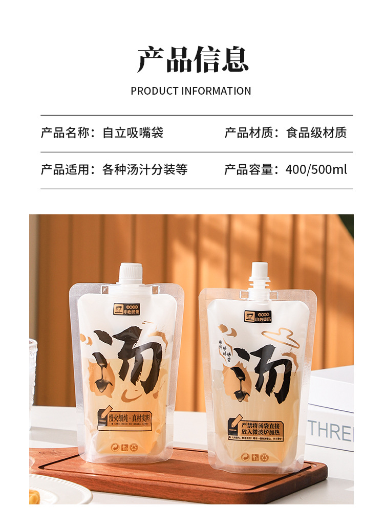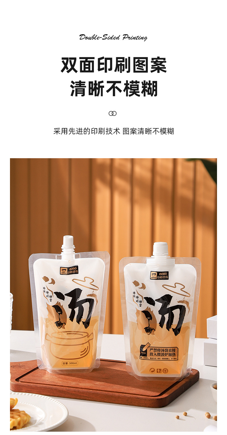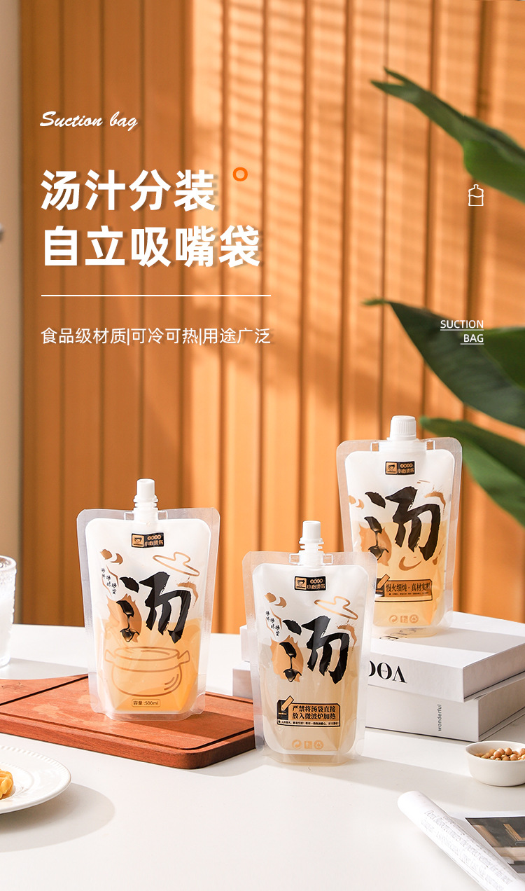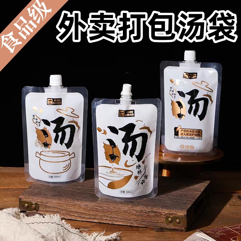 Одноразовые пакеты для супа на вынос, пакеты для коммерческой упаковки, лапша-улитка, герметичные пакеты для изливки горячего супа, самостоящие пакеты для пищевых продуктов