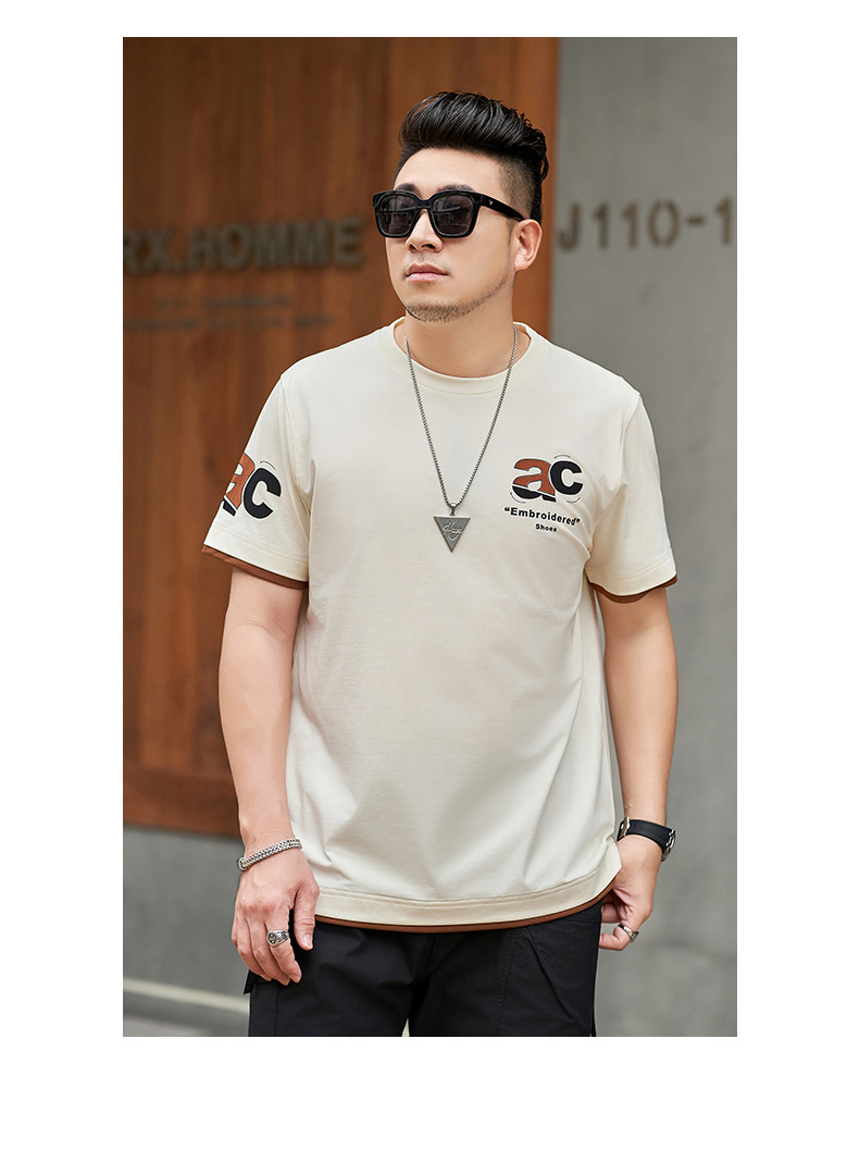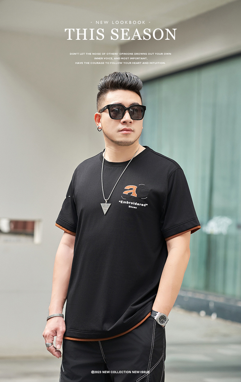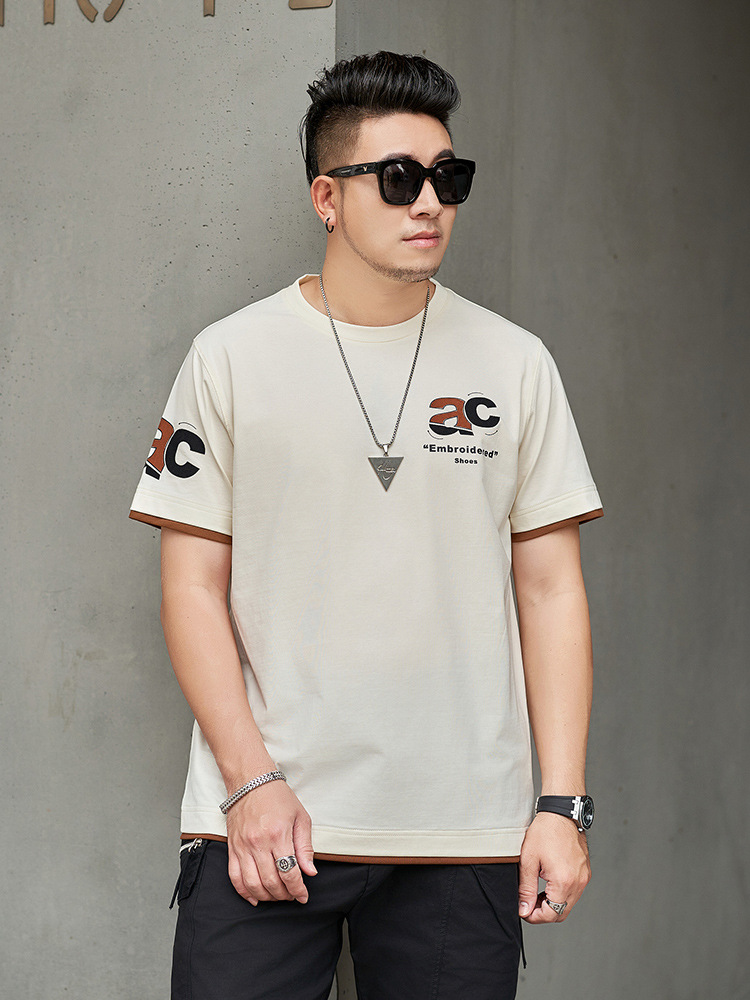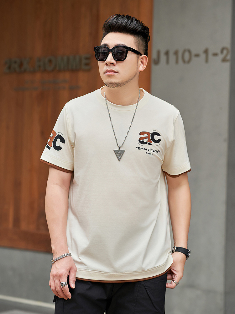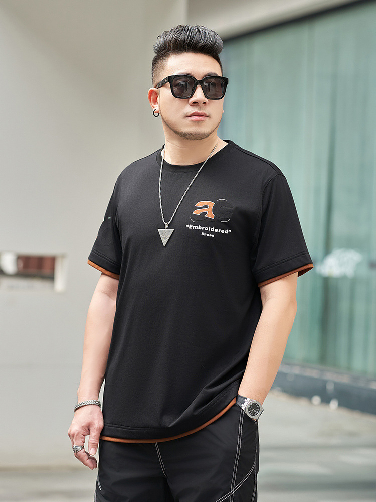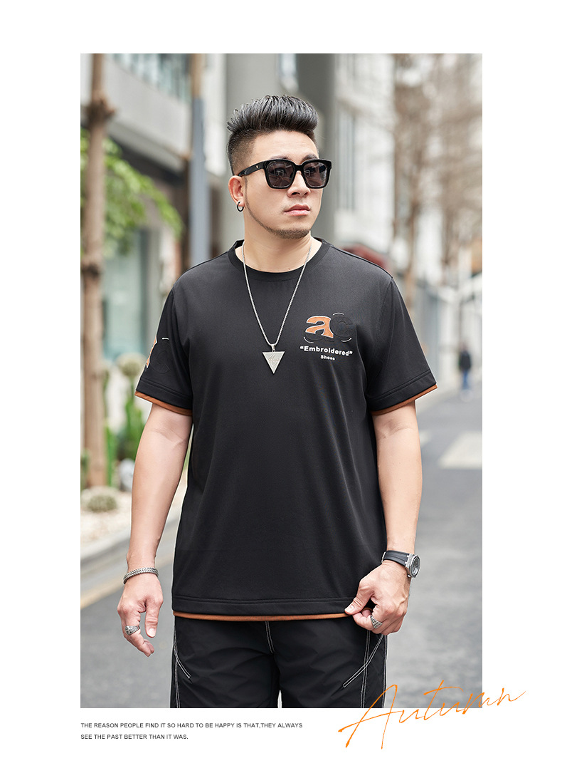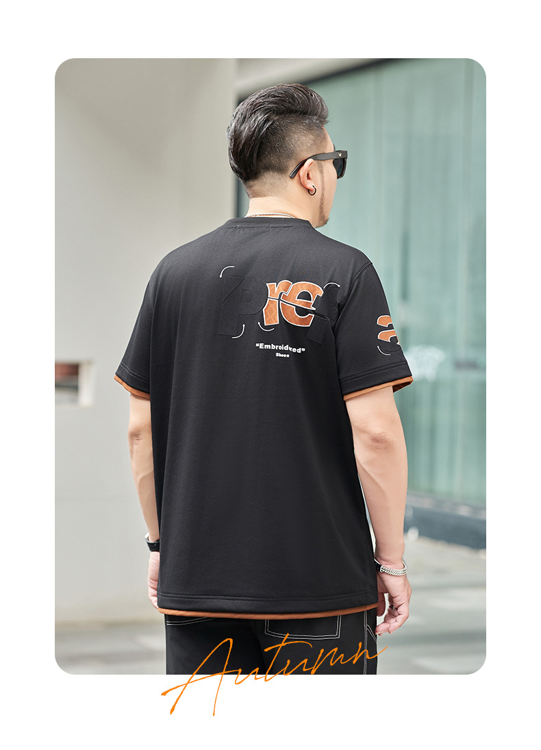 [Clearout/все размеры] T1058 Мужская футболка большого размера в гонконгском стиле из двух частей с заниженными плечами и круглым вырезом с вышивкой и короткими рукавами для мужчин