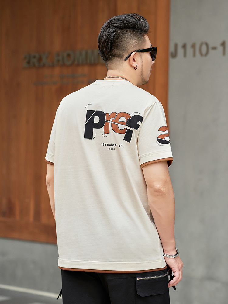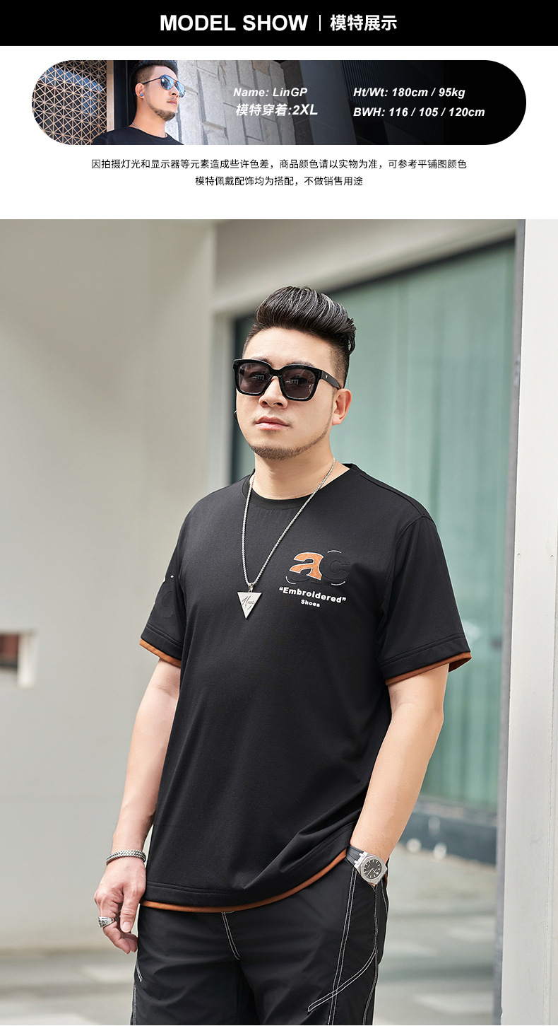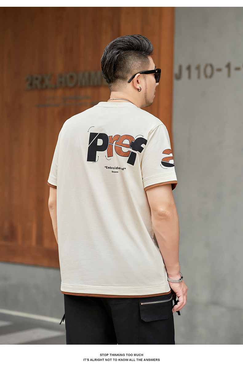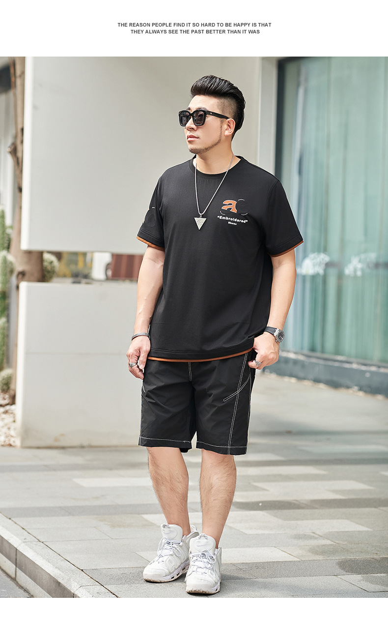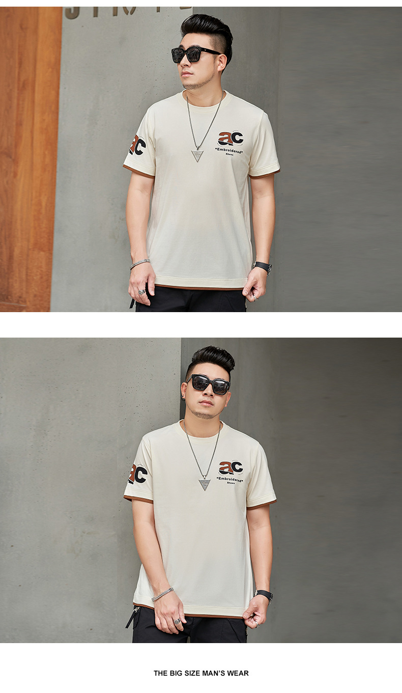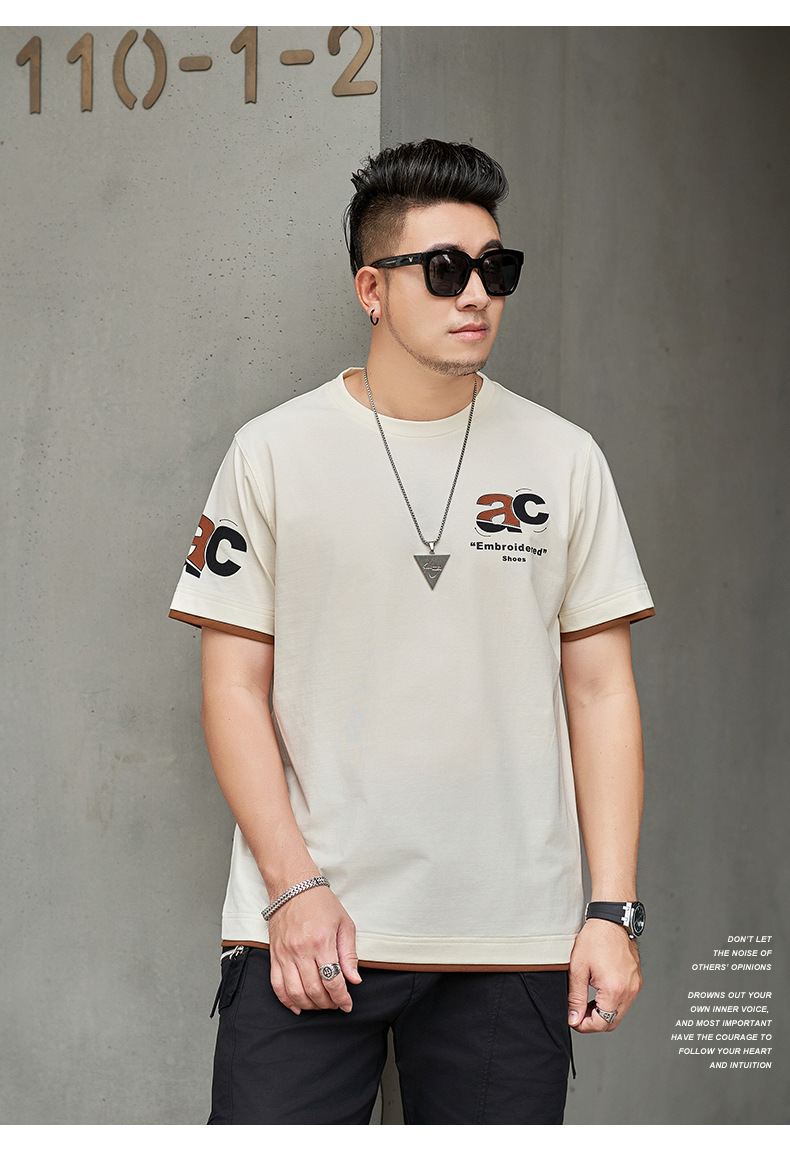 [Clearout/все размеры] T1058 Мужская футболка большого размера в гонконгском стиле из двух частей с заниженными плечами и круглым вырезом с вышивкой и короткими рукавами для мужчин