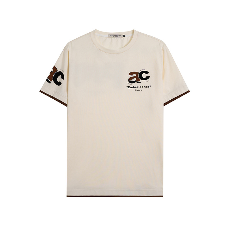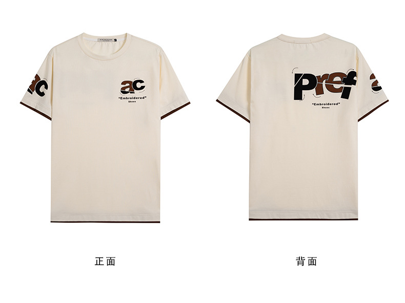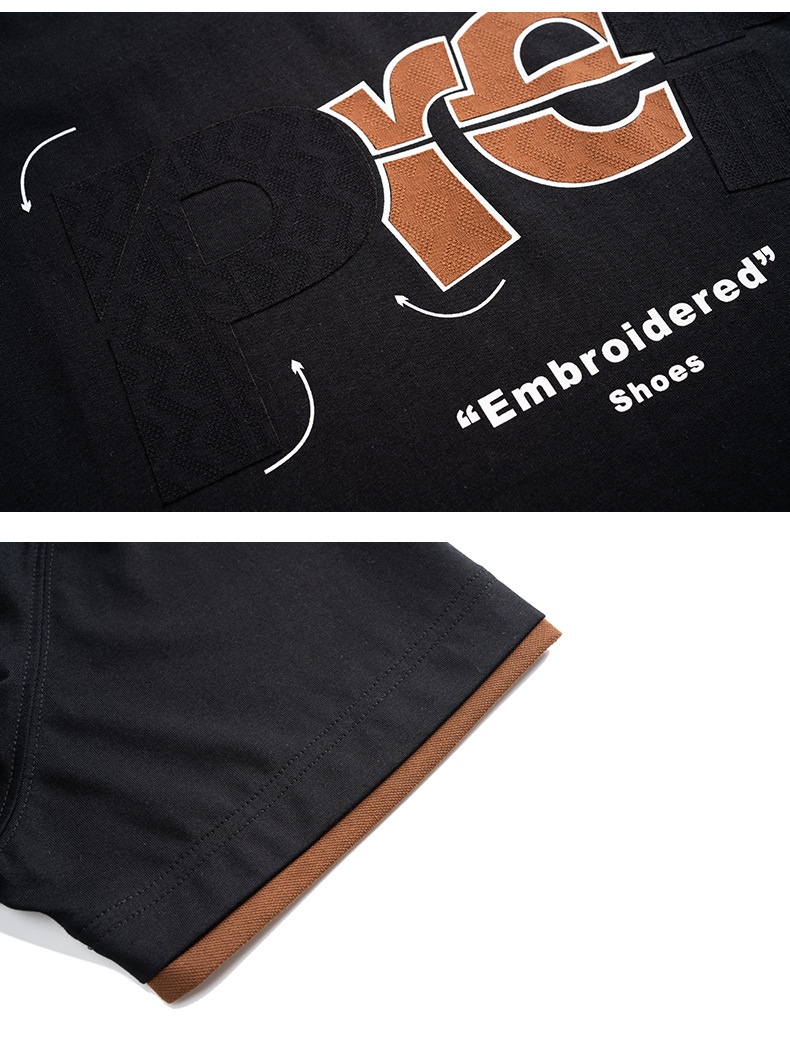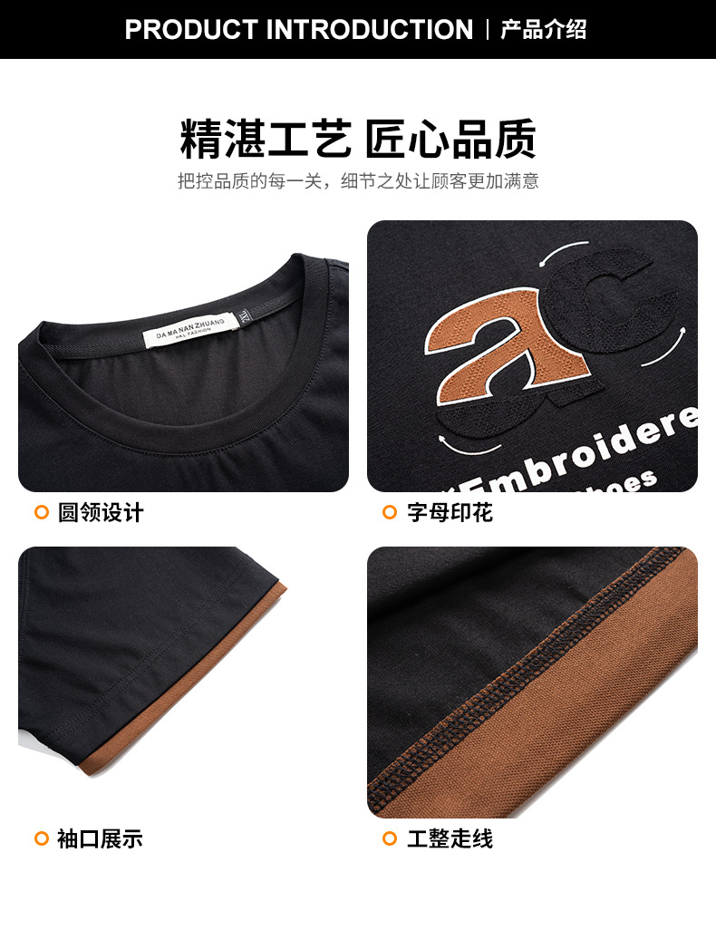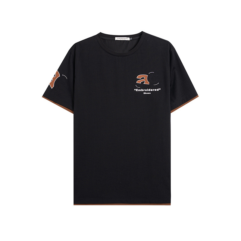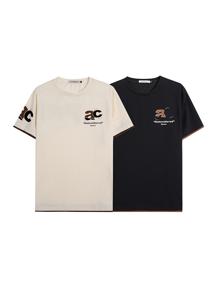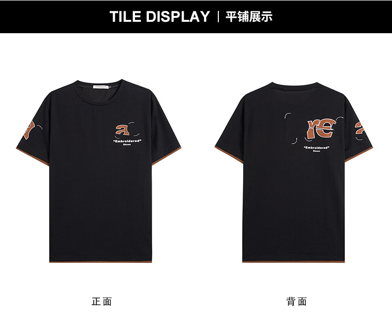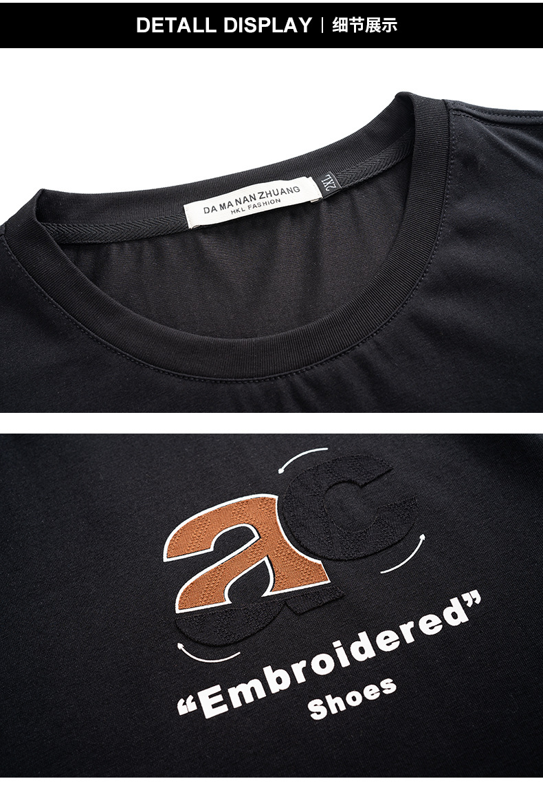 [Clearout/все размеры] T1058 Мужская футболка большого размера в гонконгском стиле из двух частей с заниженными плечами и круглым вырезом с вышивкой и короткими рукавами для мужчин