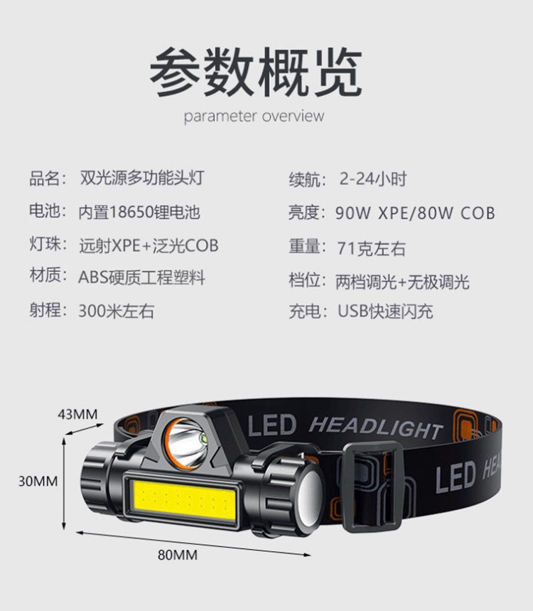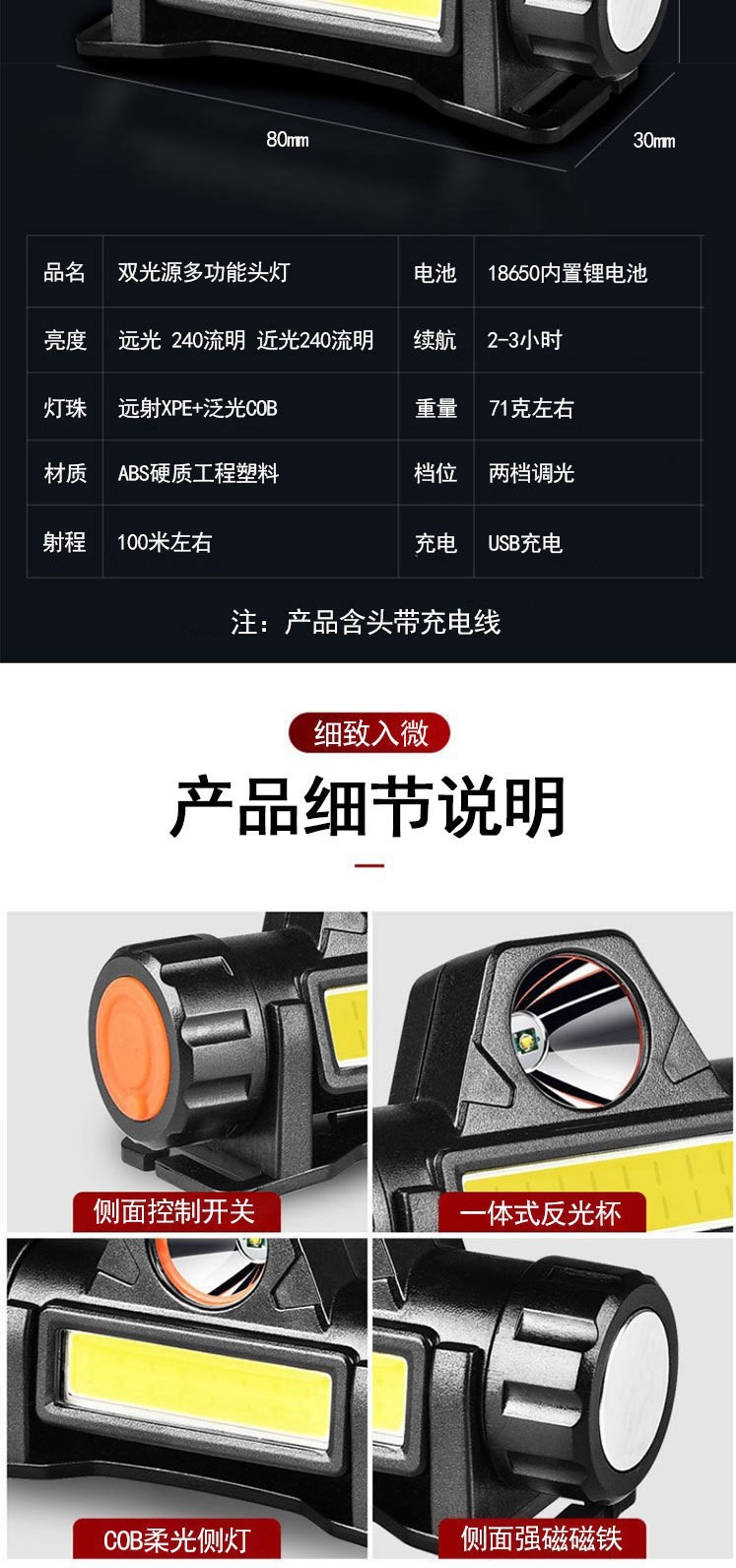 Светодиодный сильный свет фары мини-зарядка небольшой водонепроницаемый астигматизм cob фары наружная ночная рыбалка фары многофункциональный фары
