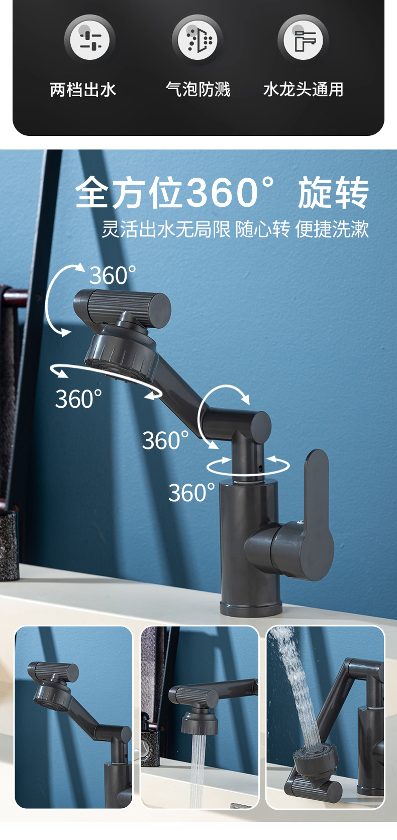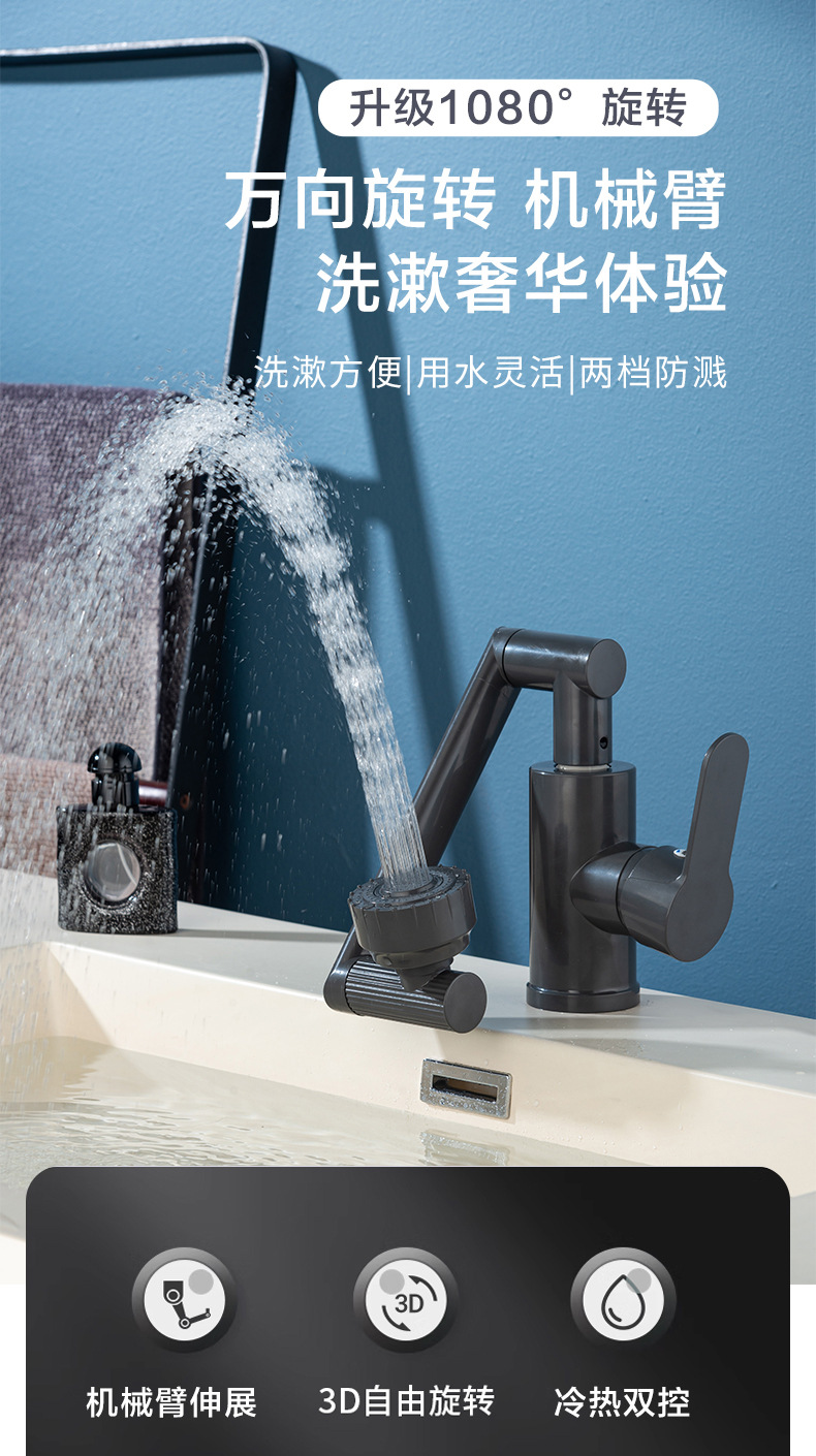 Смеситель для раковины с механическим управлением, универсальный, для ванной комнаты, с защитой от брызг, для горячей и холодной воды, смеситель «Счастливый кот»