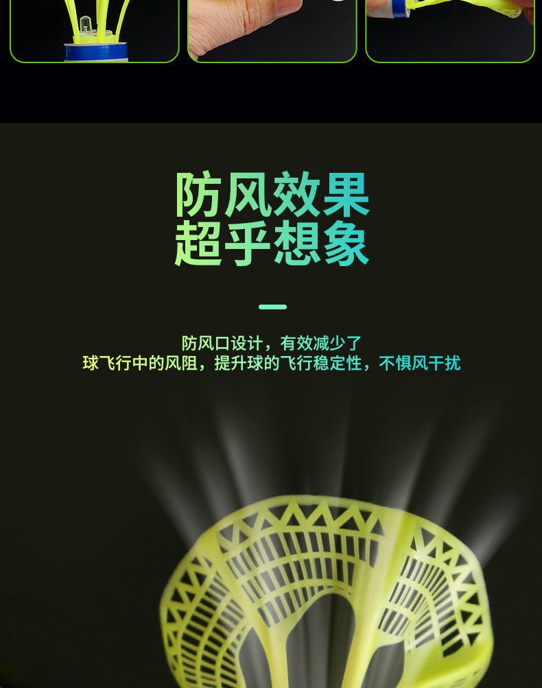 Светящийся ветрозащитный полый светящийся мяч для бадминтона