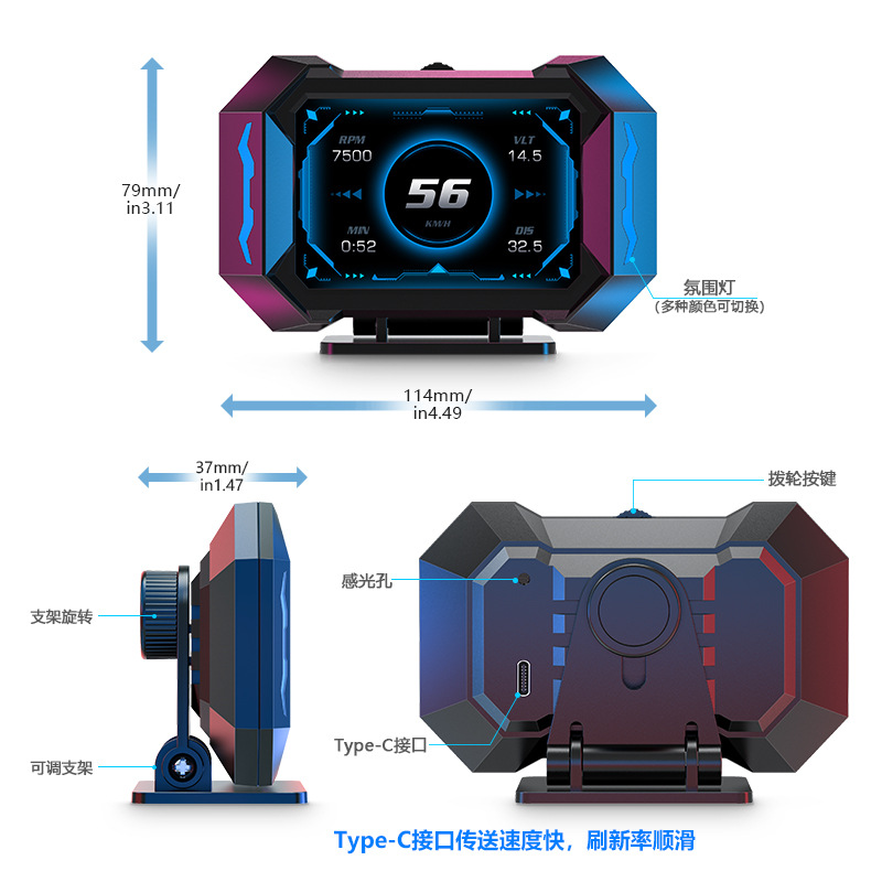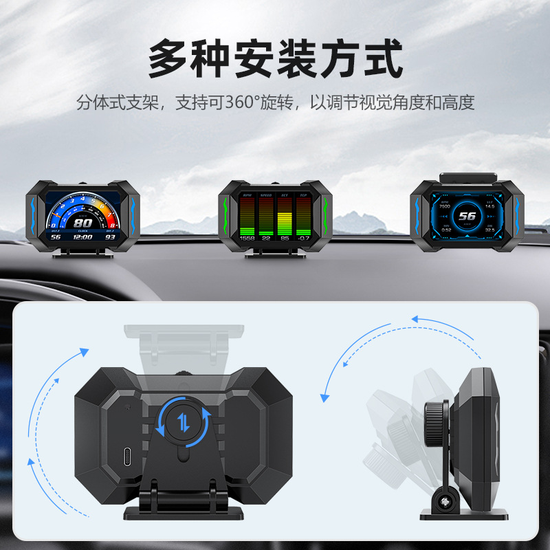 2024 Новое обновление HUD Head Display Автомобильный ЖК-счетчик скорости OBD2 Многофункциональный метр