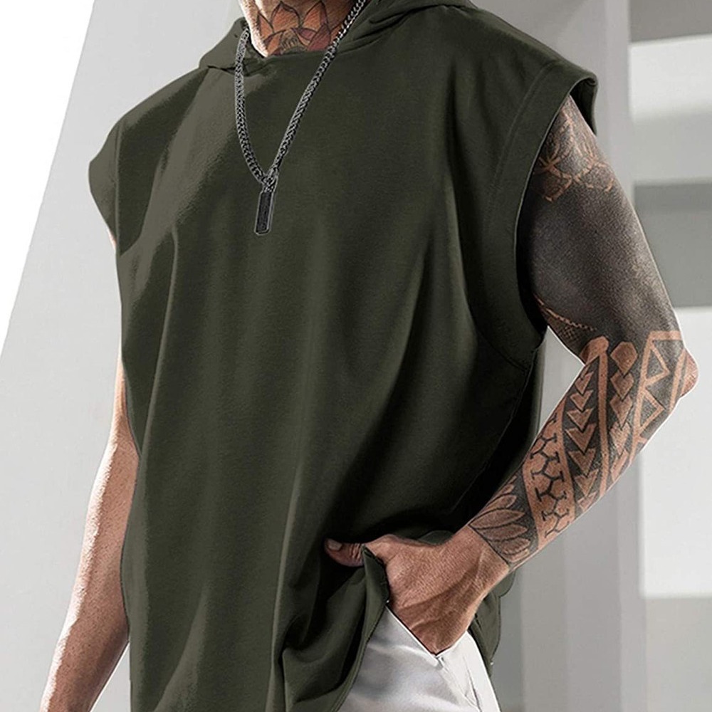 2024 летняя мужская фитнес-тренировка пуловеры спорт досуг европейский и американский прилив с капюшоном с капюшоном мужской сплошной жилет