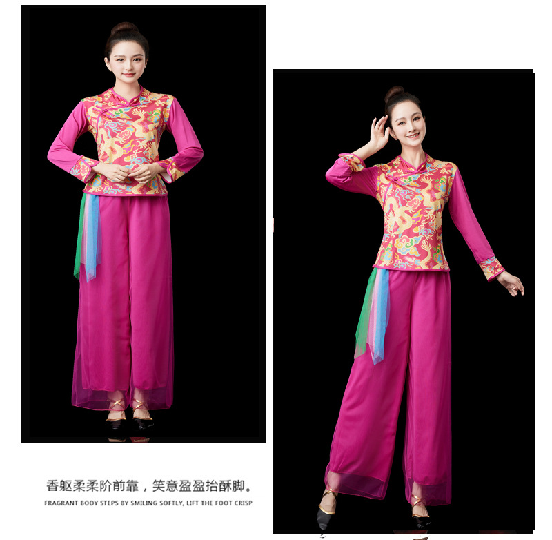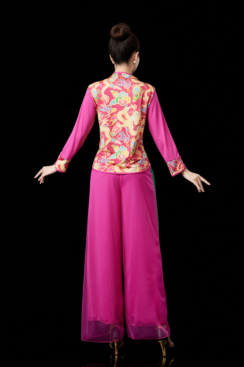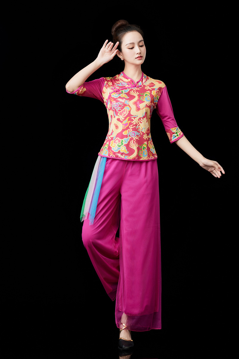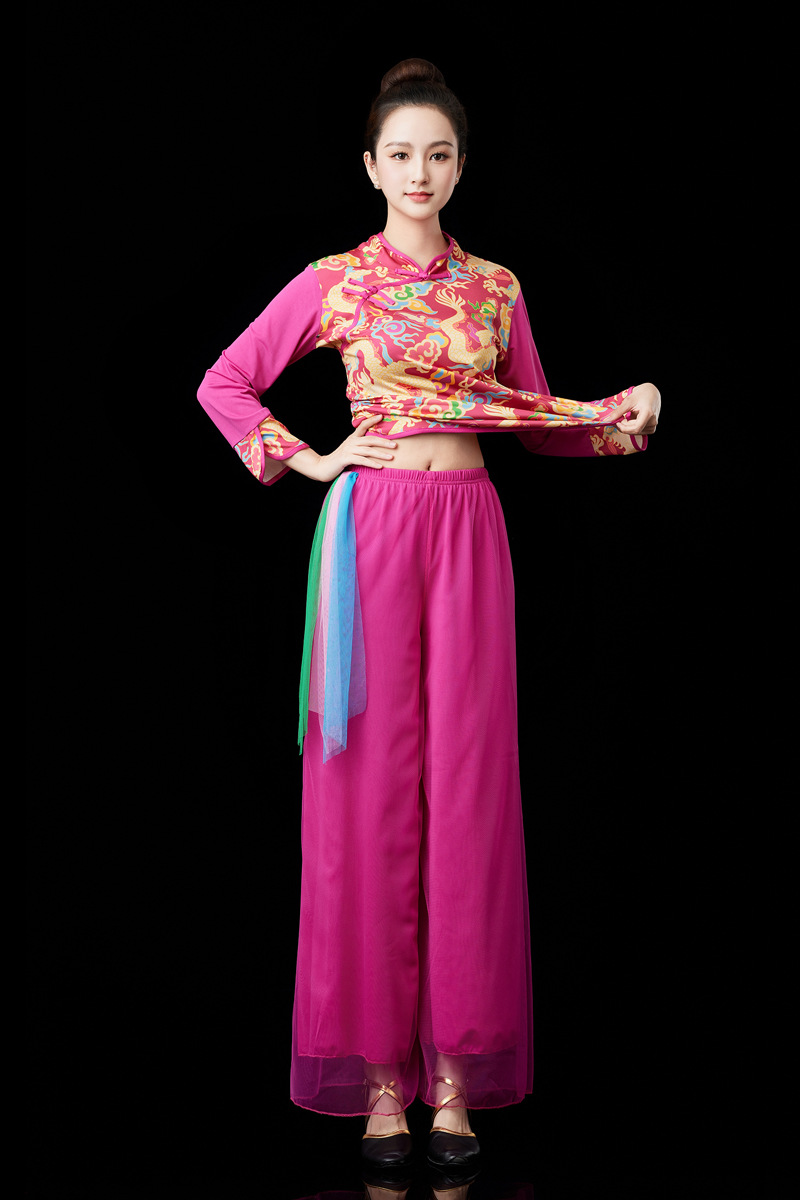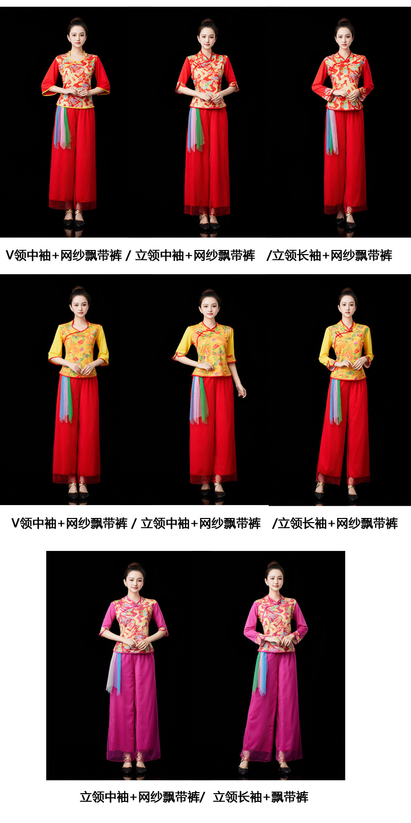 Красный воротник-стойка, средние рукава + брюки с красной лентой.; Красный воротник-стойка, длинные рукава + брюки с красной лентой.; Желтый воротник-стойка до середины рукавов + брюки с красной лентой; Желтый воротник-стойка, длинные рукава + брюки с красной лентой.; Фиолетовая роза, воротник-стойка, средние рукава + брюки с фиолетовой розовой лентой; Фиолетовая роза с воротником-стойкой и длинными рукавами + брюки с фиолетовой розовой лентой; Цельные брюки с красной лентой; Желтый топ с V-образным вырезом + брюки с красной лентой; Красный топ с V-образным вырезом + брюки с красной лентой; Топ с фиолетовой розой с V-образным вырезом + брюки с фиолетовой розовой лентой; Цельные брюки с фиолетовой розой и красной лентой; Одинарный красный топ со средними рукавами и воротником-стойкой; Одинарный фиолетовый топ со средними рукавами и воротником-стойкой; Одинарный желтый топ со средними рукавами и воротником-стойкой; Одинарный красный топ с воротником-стойкой и длинными рукавами; Одиночный фиолетовый топ с воротником-стойкой и длинными рукавами; Цельный желтый топ с воротником-стойкой и длинными рукавами; Одинарный красный топ с V-образным вырезом; Одинарный фиолетовый топ с V-образным вырезом; Одинарный желтый топ с V-образным вырезом