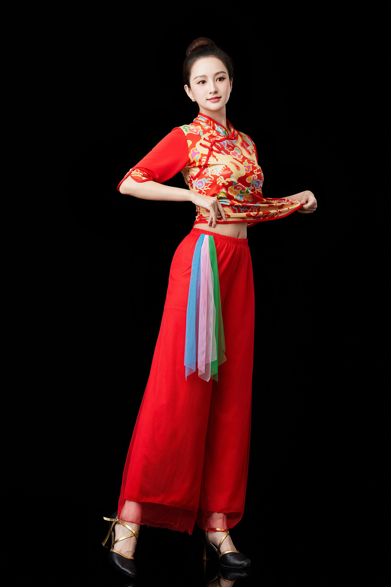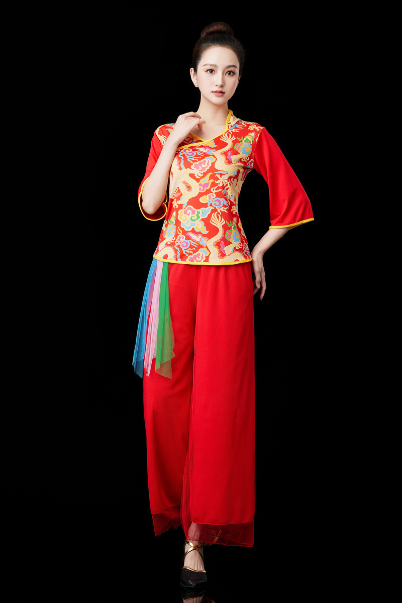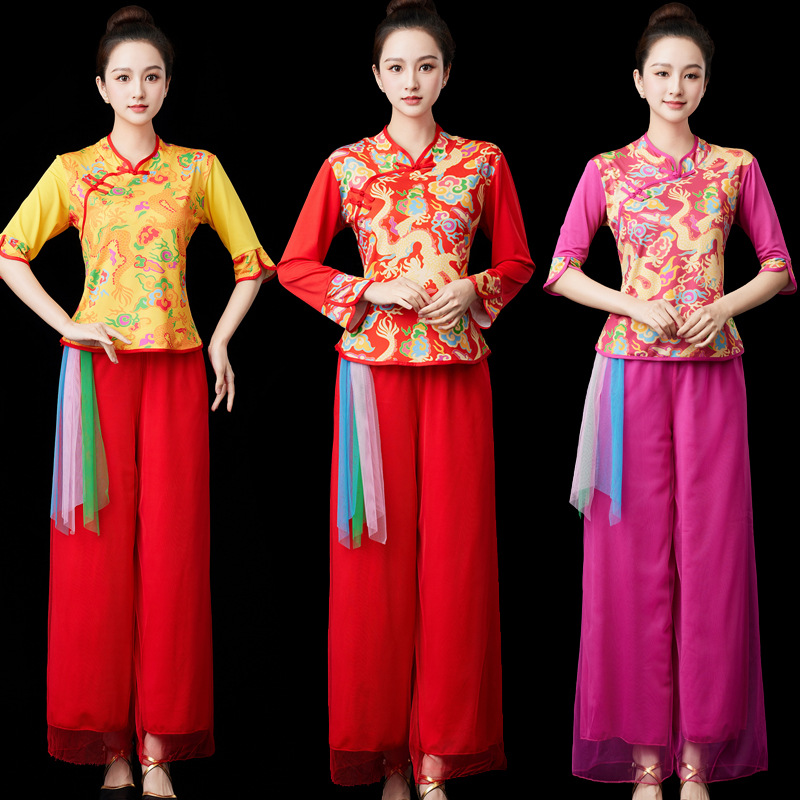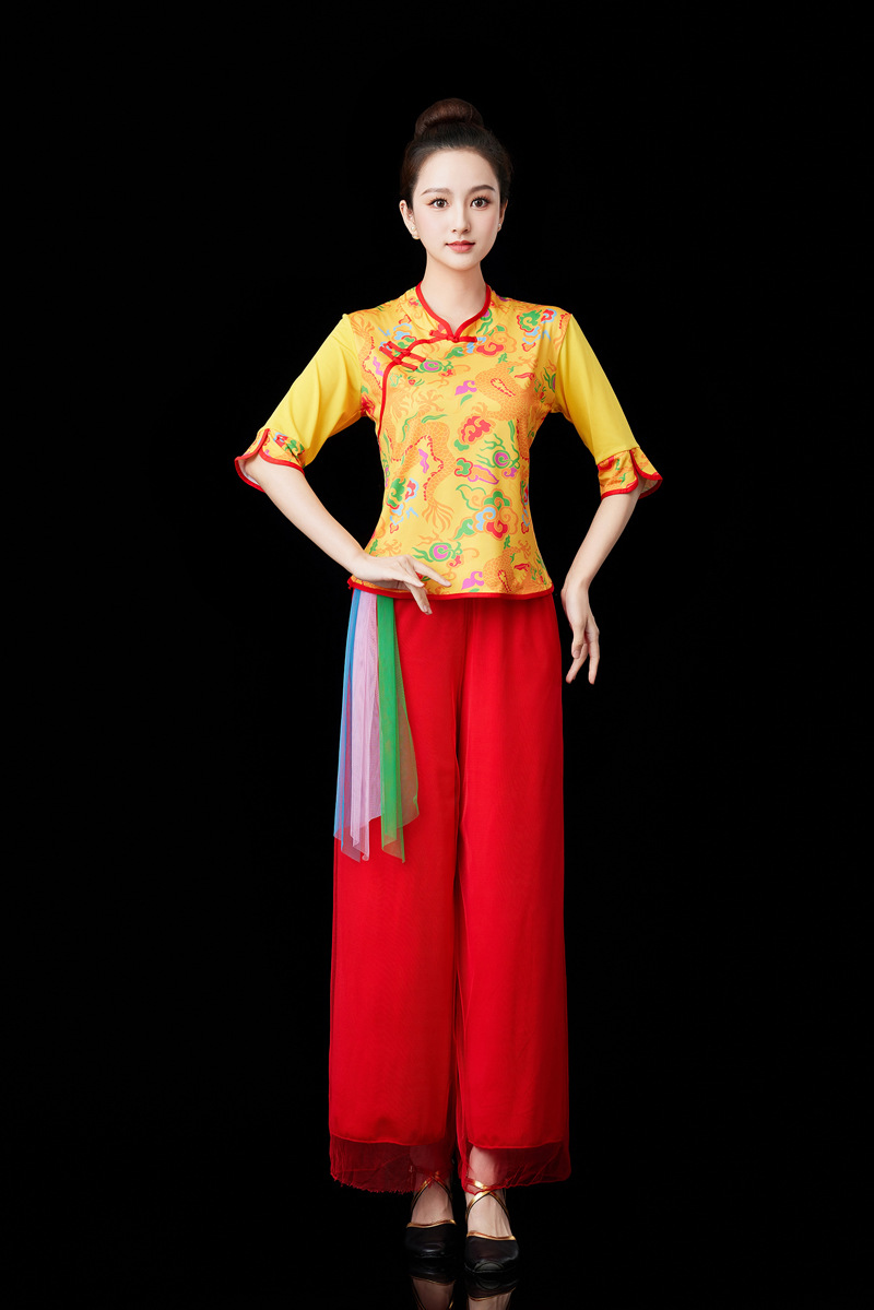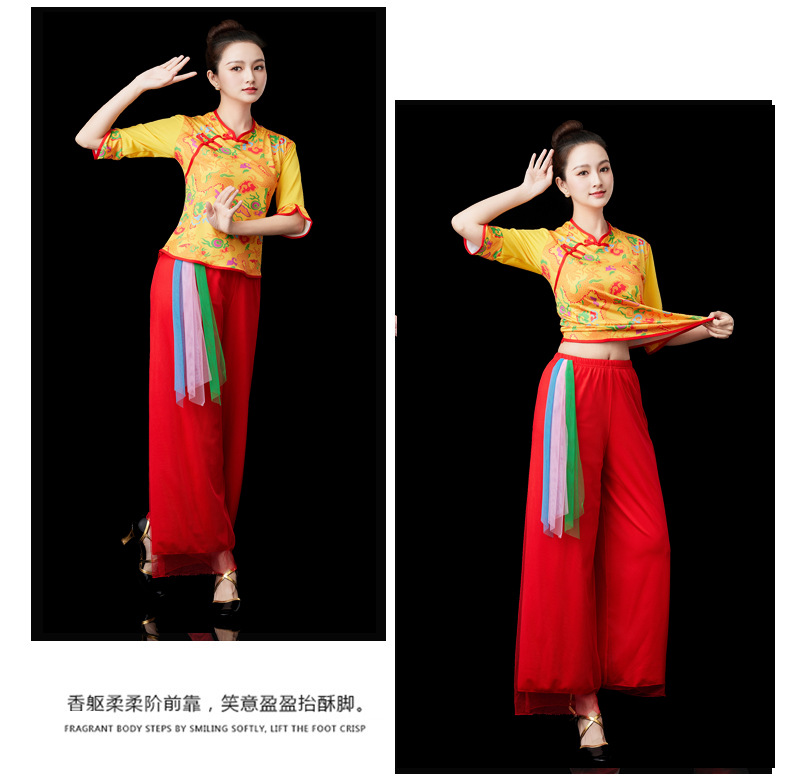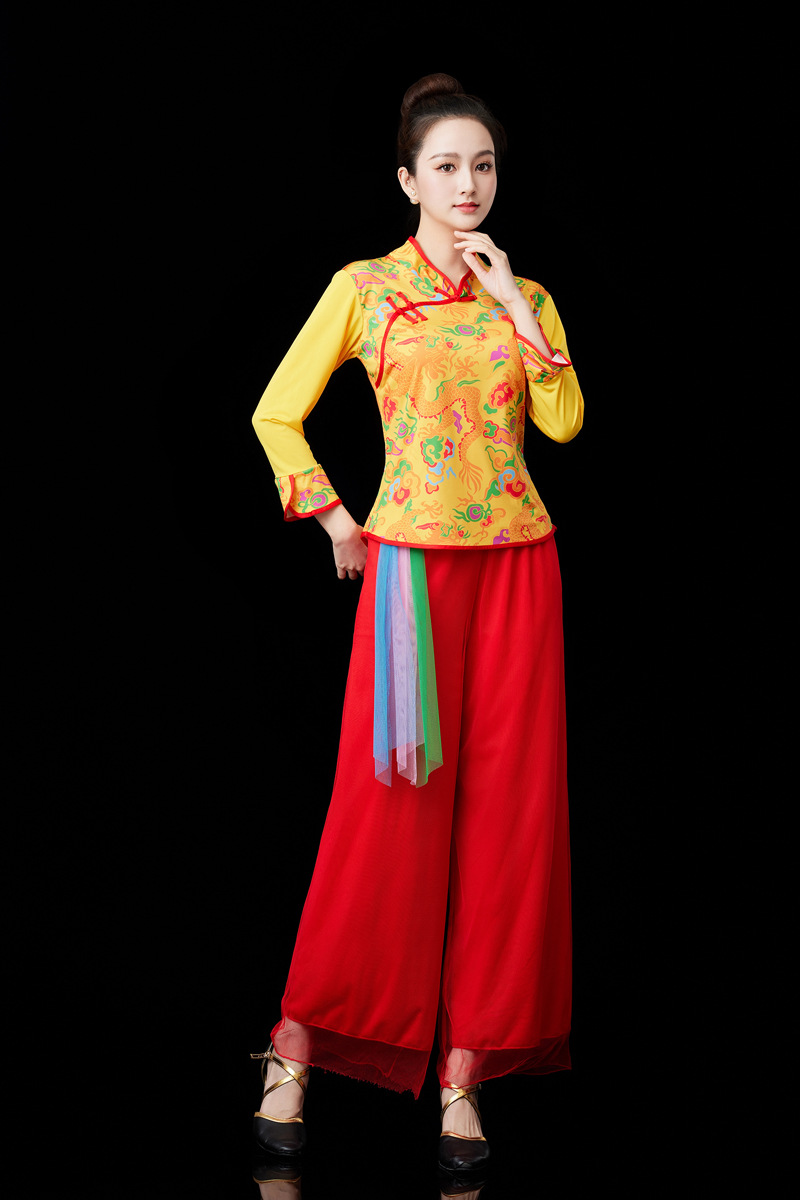 Красный воротник-стойка, средние рукава + брюки с красной лентой.; Красный воротник-стойка, длинные рукава + брюки с красной лентой.; Желтый воротник-стойка до середины рукавов + брюки с красной лентой; Желтый воротник-стойка, длинные рукава + брюки с красной лентой.; Фиолетовая роза, воротник-стойка, средние рукава + брюки с фиолетовой розовой лентой; Фиолетовая роза с воротником-стойкой и длинными рукавами + брюки с фиолетовой розовой лентой; Цельные брюки с красной лентой; Желтый топ с V-образным вырезом + брюки с красной лентой; Красный топ с V-образным вырезом + брюки с красной лентой; Топ с фиолетовой розой с V-образным вырезом + брюки с фиолетовой розовой лентой; Цельные брюки с фиолетовой розой и красной лентой; Одинарный красный топ со средними рукавами и воротником-стойкой; Одинарный фиолетовый топ со средними рукавами и воротником-стойкой; Одинарный желтый топ со средними рукавами и воротником-стойкой; Одинарный красный топ с воротником-стойкой и длинными рукавами; Одиночный фиолетовый топ с воротником-стойкой и длинными рукавами; Цельный желтый топ с воротником-стойкой и длинными рукавами; Одинарный красный топ с V-образным вырезом; Одинарный фиолетовый топ с V-образным вырезом; Одинарный желтый топ с V-образным вырезом