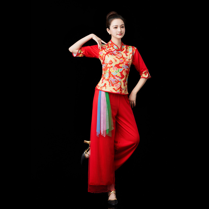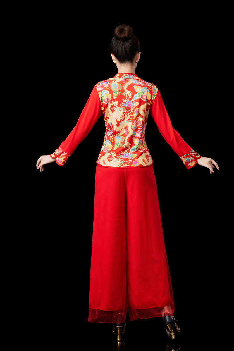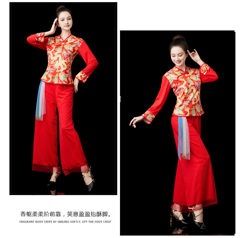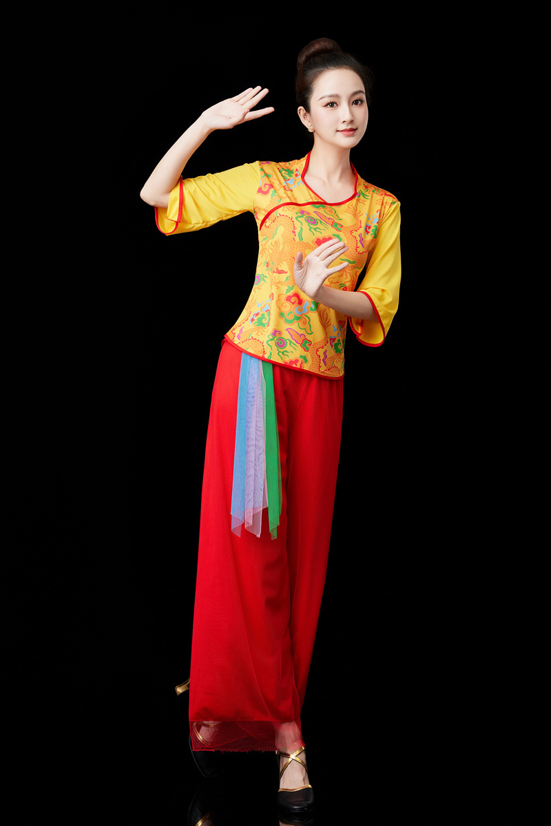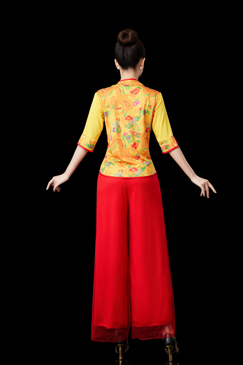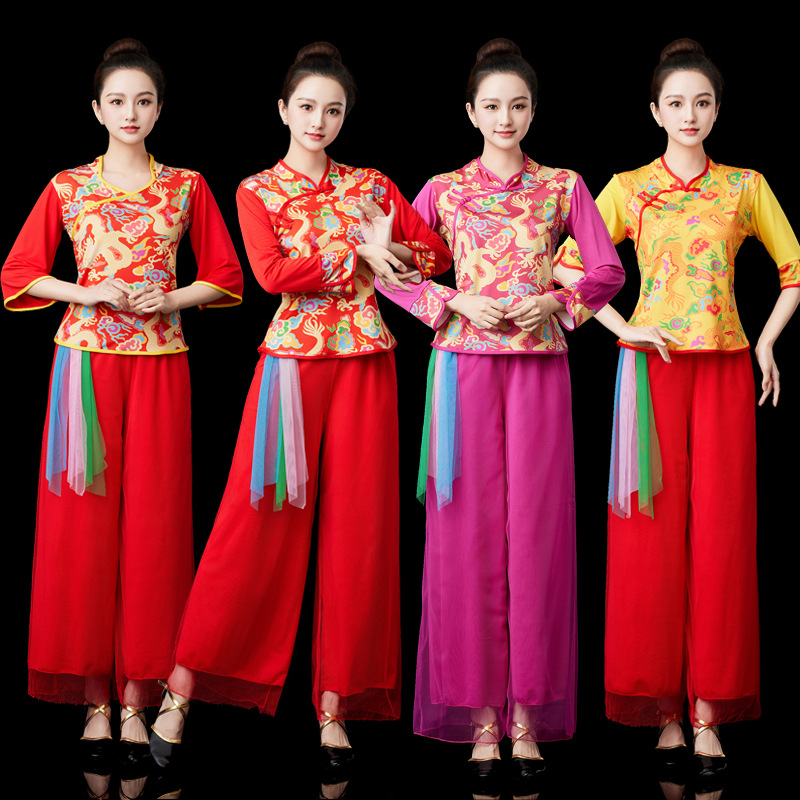 Красный воротник-стойка, средние рукава + брюки с красной лентой.; Красный воротник-стойка, длинные рукава + брюки с красной лентой.; Желтый воротник-стойка до середины рукавов + брюки с красной лентой; Желтый воротник-стойка, длинные рукава + брюки с красной лентой.; Фиолетовая роза, воротник-стойка, средние рукава + брюки с фиолетовой розовой лентой; Фиолетовая роза с воротником-стойкой и длинными рукавами + брюки с фиолетовой розовой лентой; Цельные брюки с красной лентой; Желтый топ с V-образным вырезом + брюки с красной лентой; Красный топ с V-образным вырезом + брюки с красной лентой; Топ с фиолетовой розой с V-образным вырезом + брюки с фиолетовой розовой лентой; Цельные брюки с фиолетовой розой и красной лентой; Одинарный красный топ со средними рукавами и воротником-стойкой; Одинарный фиолетовый топ со средними рукавами и воротником-стойкой; Одинарный желтый топ со средними рукавами и воротником-стойкой; Одинарный красный топ с воротником-стойкой и длинными рукавами; Одиночный фиолетовый топ с воротником-стойкой и длинными рукавами; Цельный желтый топ с воротником-стойкой и длинными рукавами; Одинарный красный топ с V-образным вырезом; Одинарный фиолетовый топ с V-образным вырезом; Одинарный желтый топ с V-образным вырезом