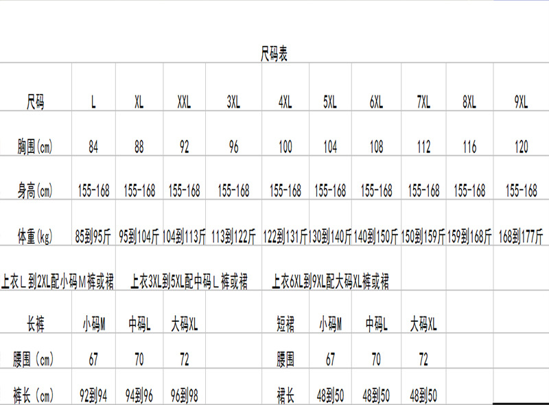 L носит от 85 до 47.5kg; XL носит с 95 по 52kg; XXL носит от 104 до 56.5kg; XXXL носит от 103 до 61kg; 4XL носит от 122 до 65.5kg; 5XL носит от 131 до 70kg; 6XL носит от 140 до 75kg; 7XL носит от 150 до 79.5kg; 8XL носит от 159 до 84kg; 9XL носит от 168 до 88.5kg