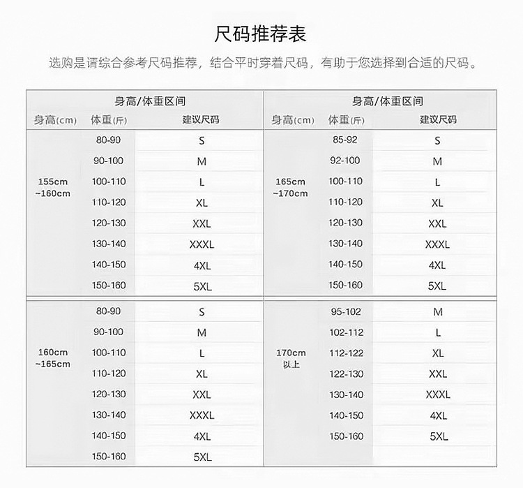 С- В пределах 45kg; М-в пределах 50kg; Л- в пределах 54kg; XL-в пределах 59kg; XXL-в пределах 64kg; XXXL- в пределах 69kg; XXXXL- В пределах 74kg; 5XL- в пределах 79kg