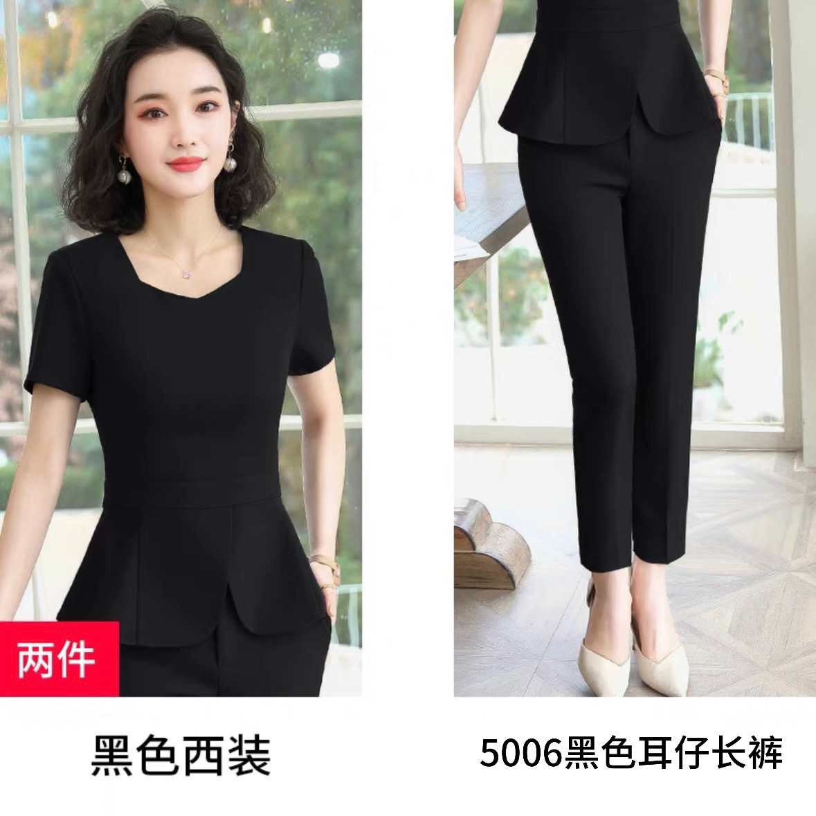 Черный костюм + женская юбка; Синий костюм + женская юбка; Черный костюм + черные брюки; Черный верх цельный; 5006 черные женские брюки цельные