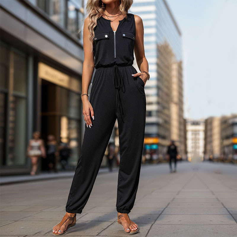 【Bai Fen Zhi Yi】Популярный летний комбинезон от Amazon, повседневный и универсальный черный комбинезон без рукавов для международных продаж