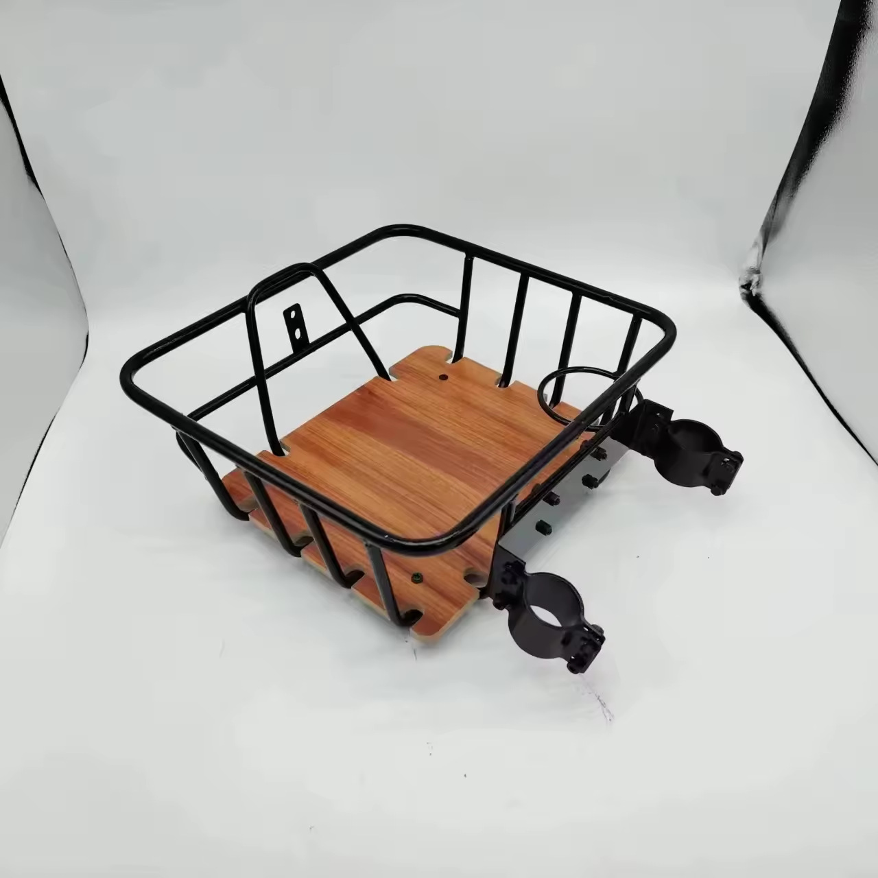 Велосипед с деревянной платформой, корзиной для электровелосипеда, утолщенной железной корзиной с держателем для бутылки с водой, держателем для кофе, рамой-корзиной для велоспорта.