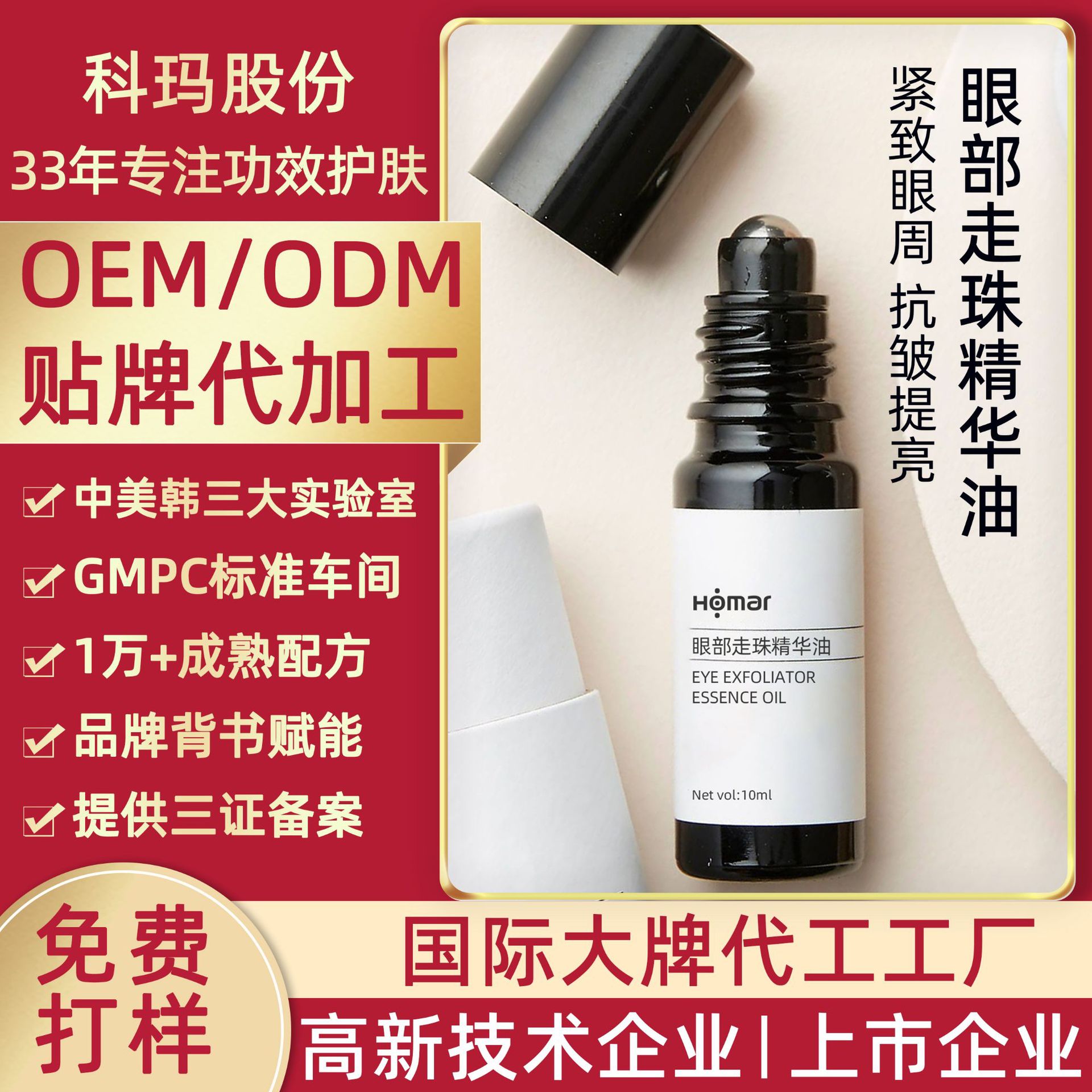 Омолаживающее масло-эссенция для глаз с эффектом лифтинга, OEM-производство на заказ, для уменьшения тонких линий и улучшения тусклости, с роликовым аппликатором.