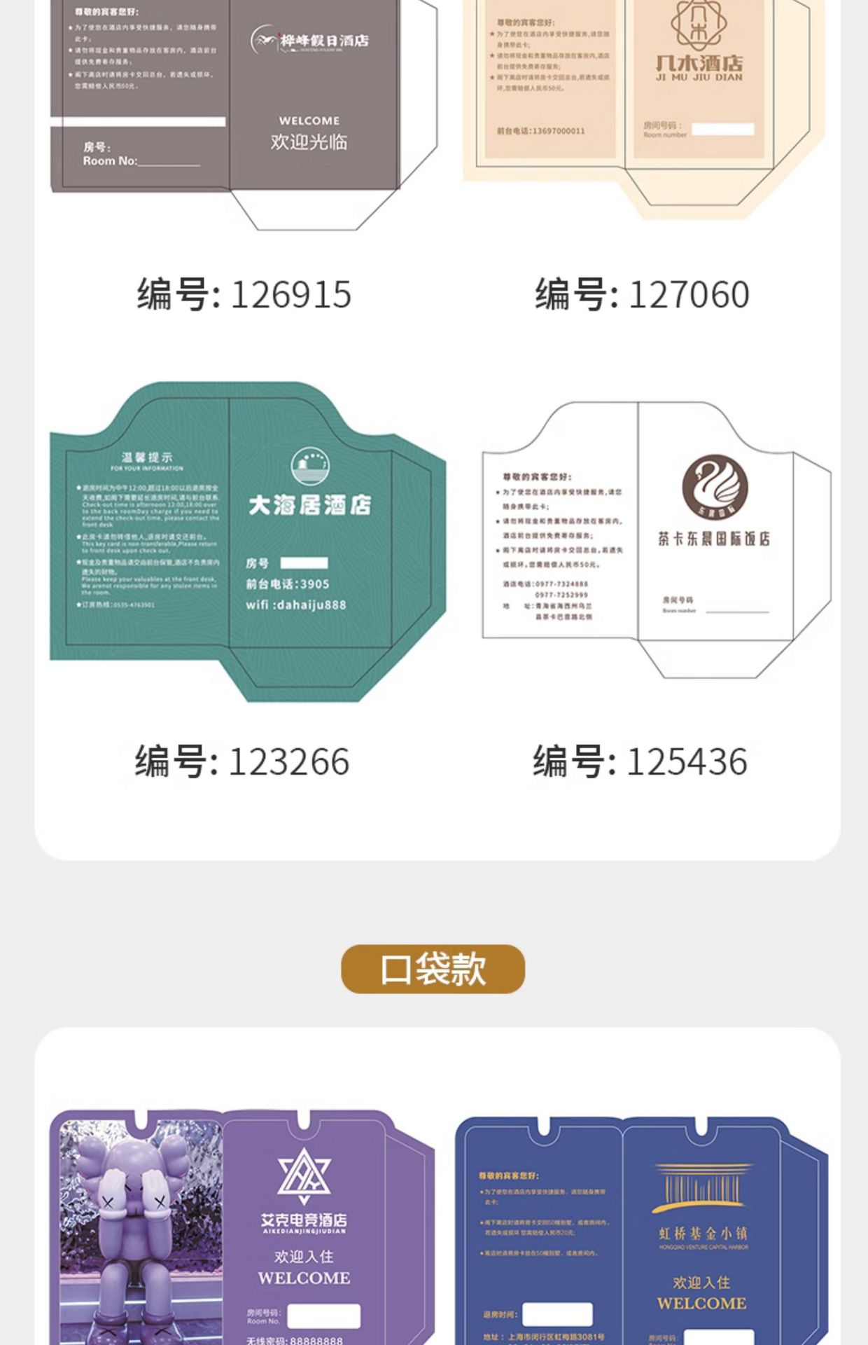 酒店房卡卡套宾馆商务会所会员贵宾卡七天酒店印刷卡袋房卡套定制