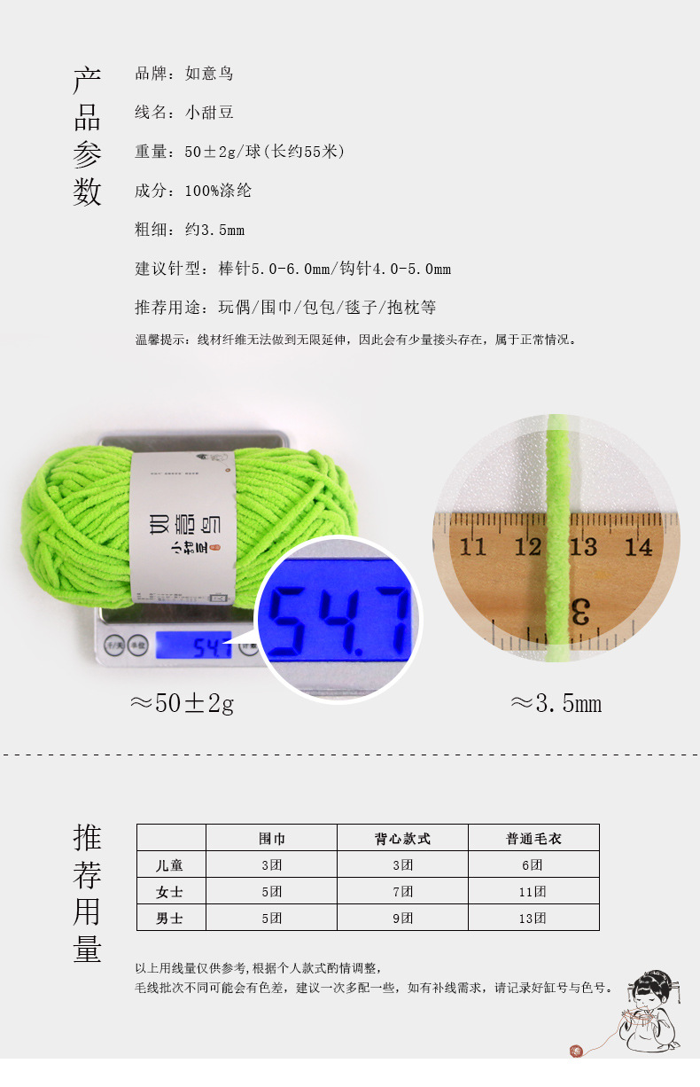 Руйи птица, маленькая сладкая фасоль, линия льда, ручная вязка крючком diy вязаная кукла, подставка, одеяло, грубая шерсть