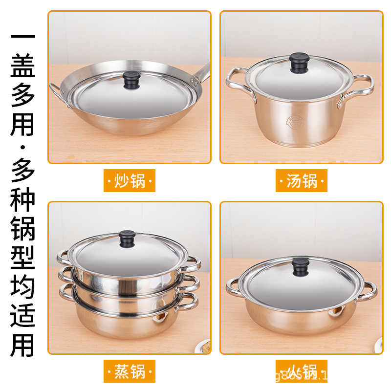 Нержавеющая сталь круглая крышка круглая крышка кастрюли универсальная универсальная крышка универсальная крышка миски жареная маленькая большая крышка кастрюли домашнего использования ins