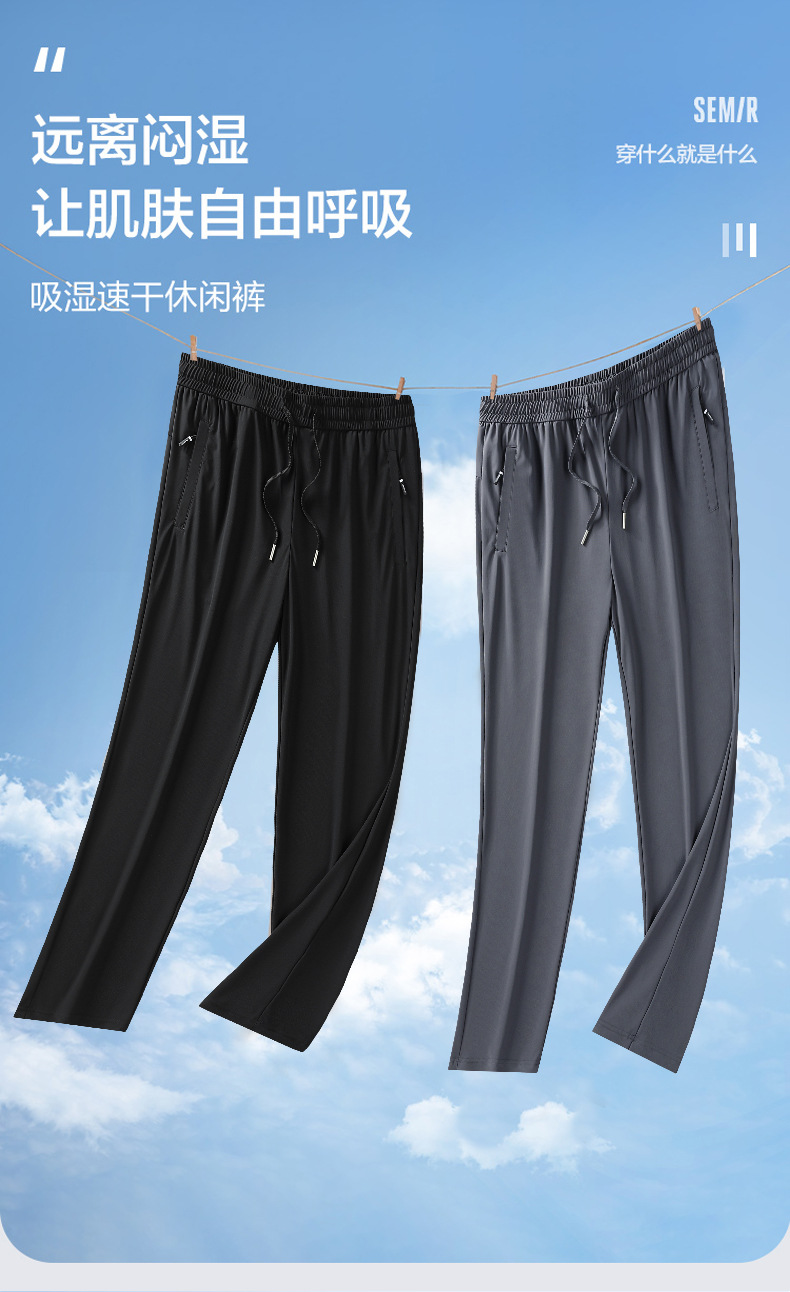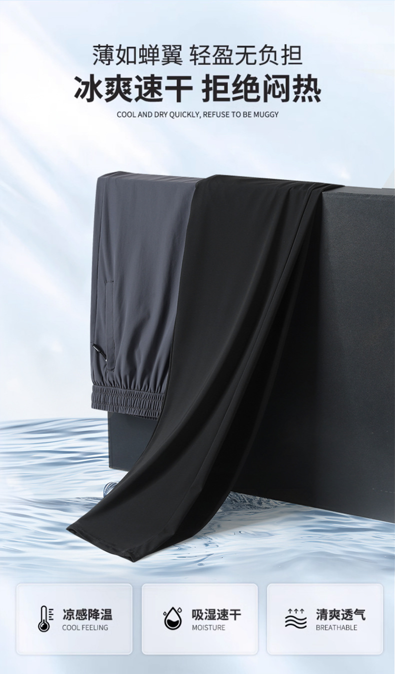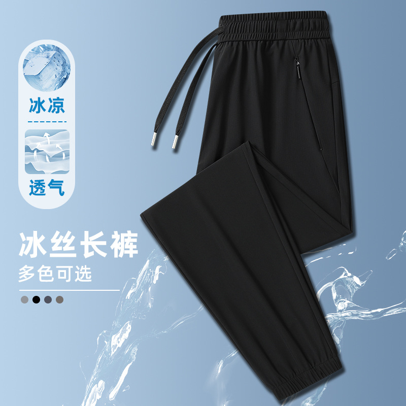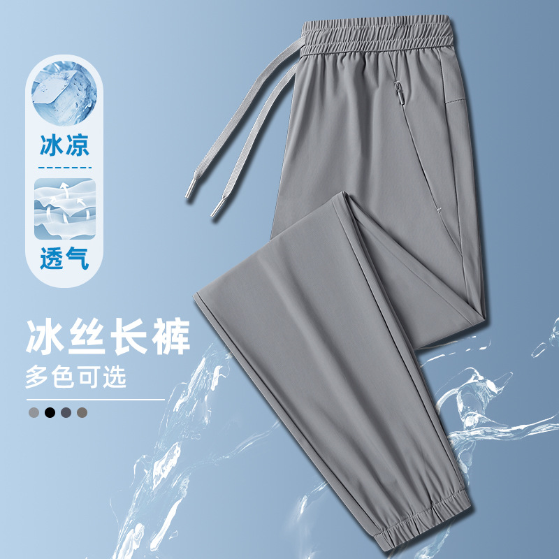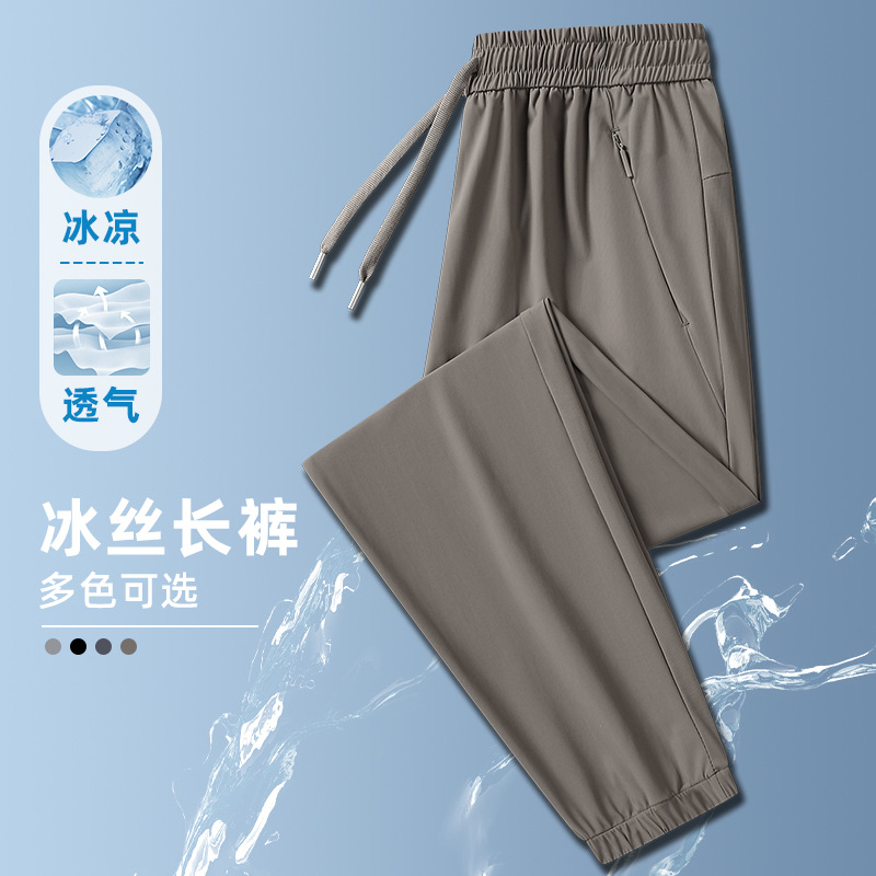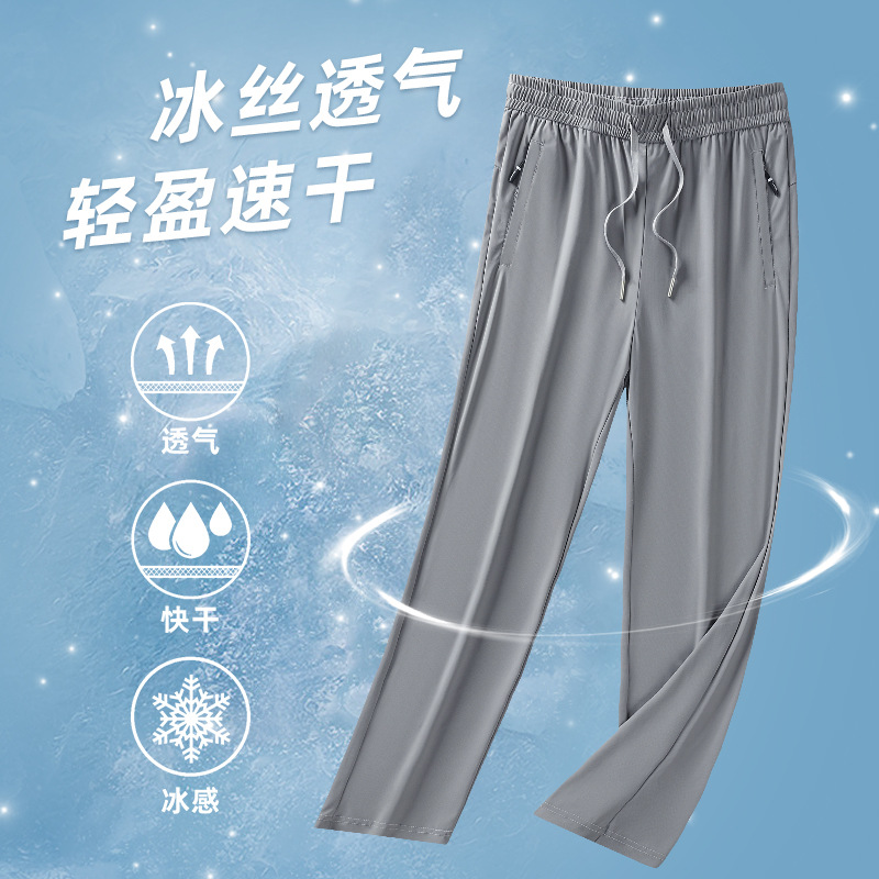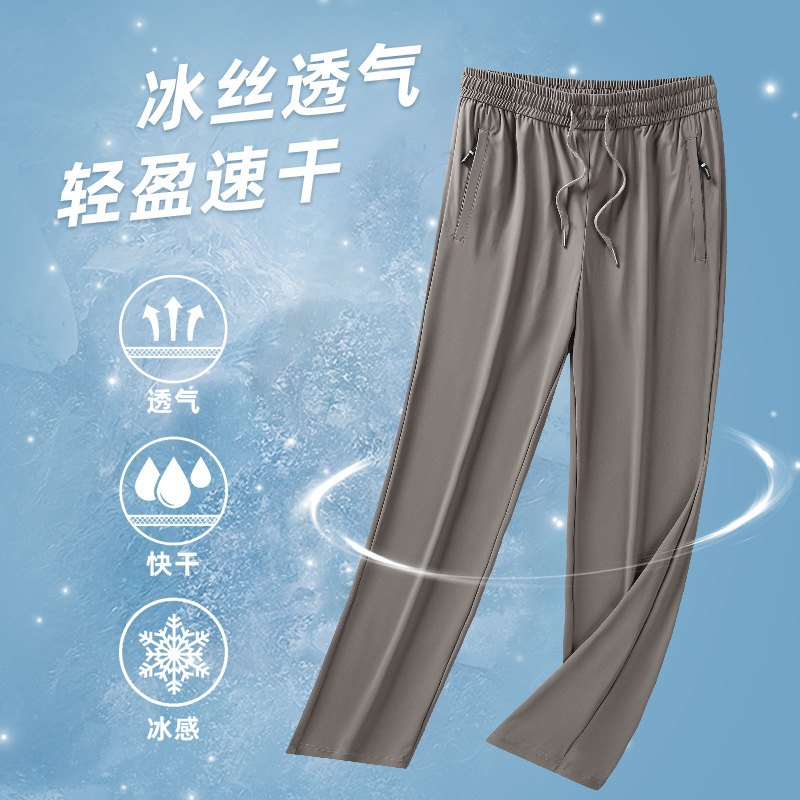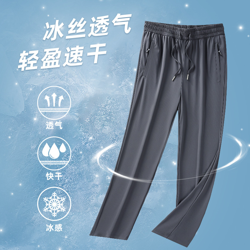 Ледяной шелк быстрорежащие брюки Мужские ультратонкие дышащие эластичные повседневные брюки свободные спортивные штаны на открытом воздухе 2024 Летний новый стиль