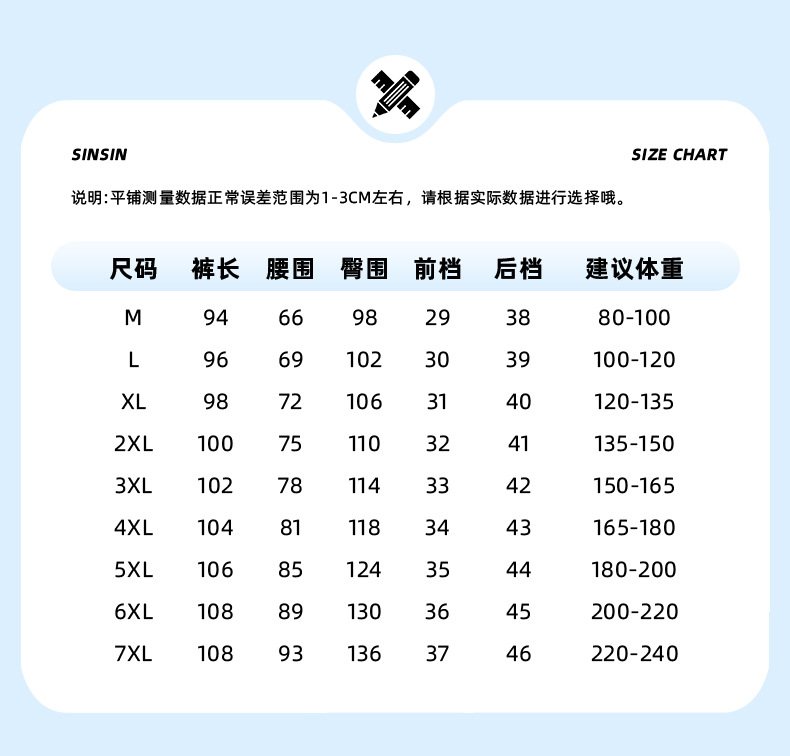 M; L; XL; XXL; XXXL; 4XL; 5XL; 6XL; 7XL