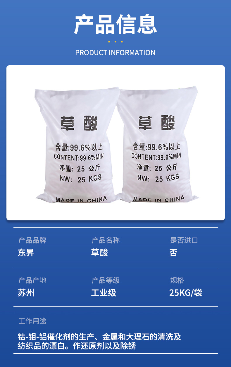 99,6% редкоземельная щавелевая кислота для очистки сточных вод, мойки, удаления накипи, нейтрализации кислоты и щелочи, безводная щавелевая кислота оптом, промышленная щавелевая кислота