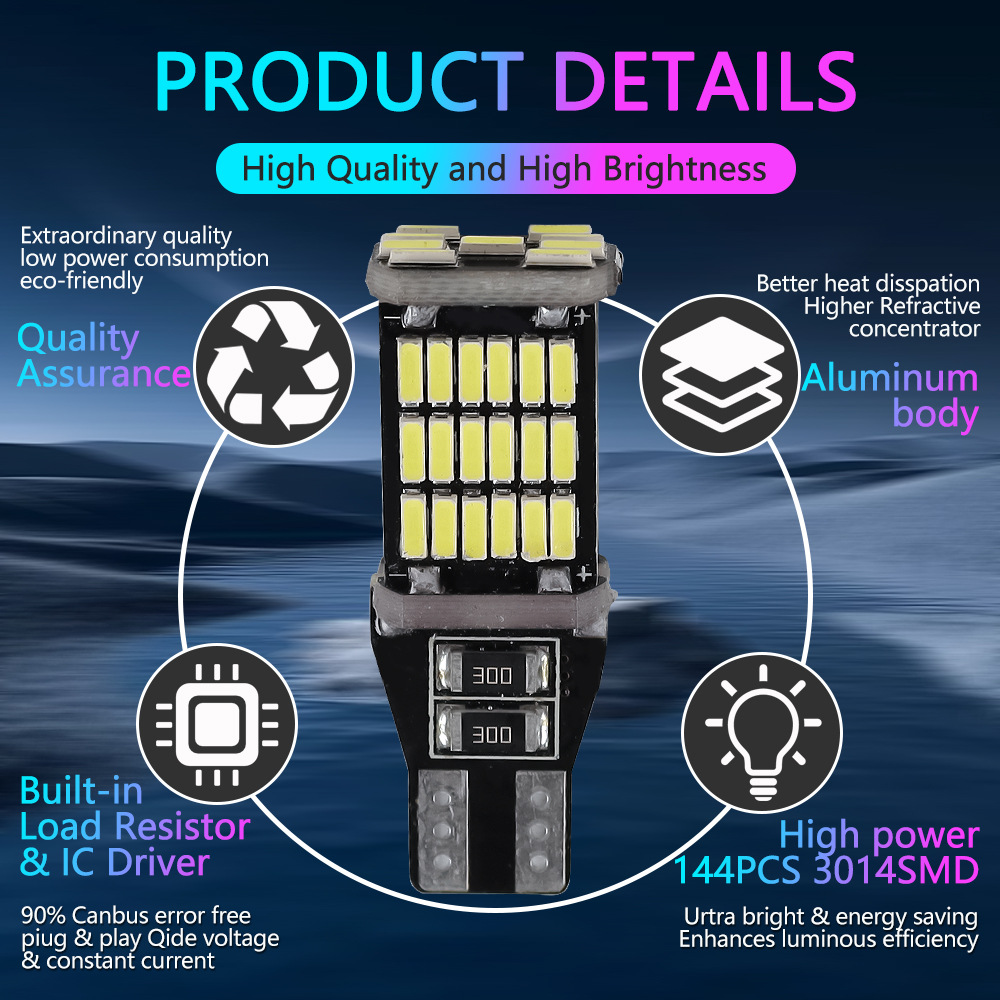 Мотоцикл автомобильный светодиодный свет заднего хода T15 4014 45SMD декодирование подсвеченных задних фонарей рулевого управления мотоцикл маленький свет
