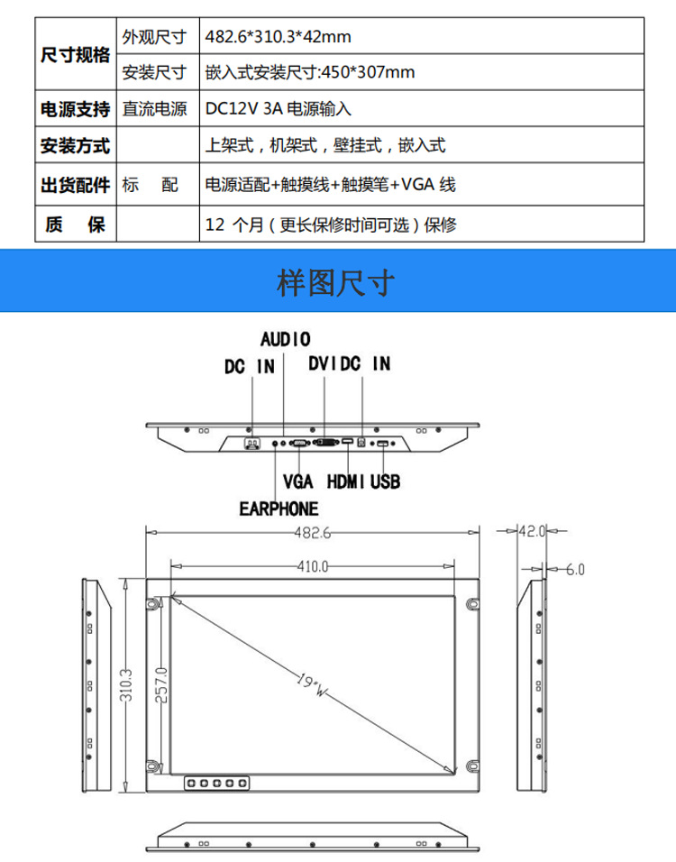 Широкоэкранный 19-дюймовый стандартный шкаф специально для стойки промышленный сенсорный компьютер монитор экран HDMI