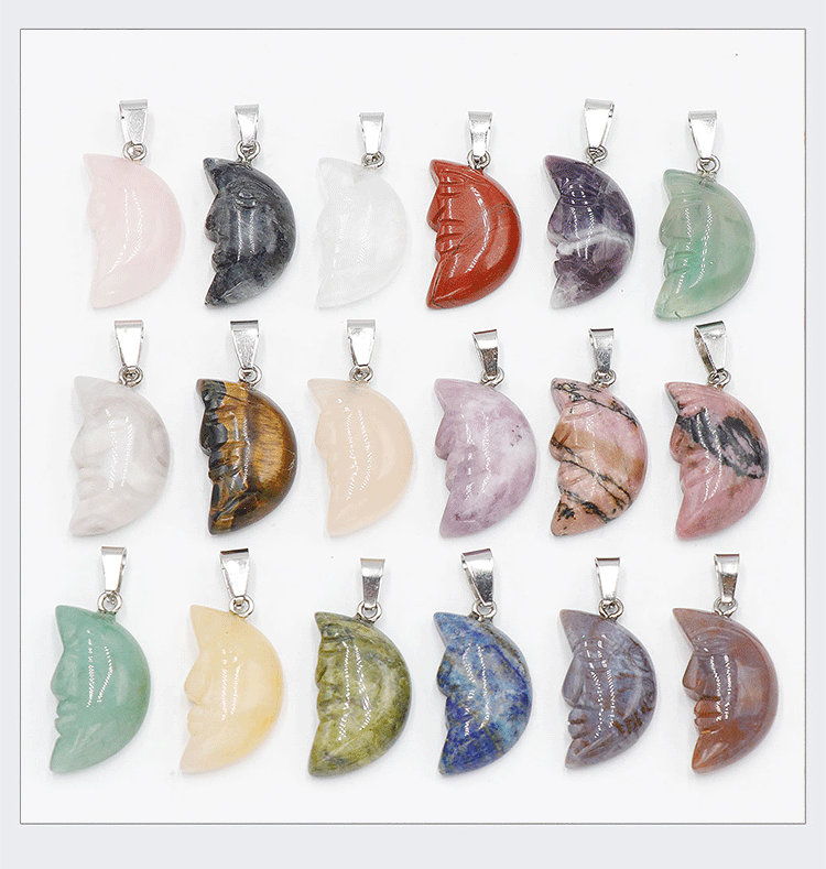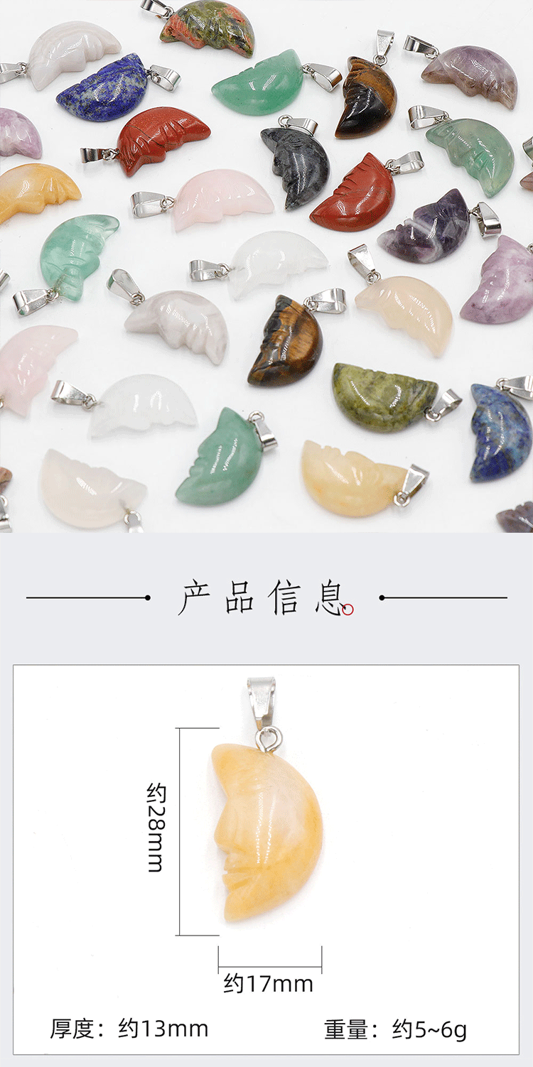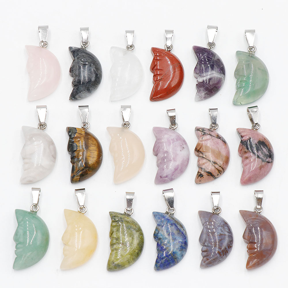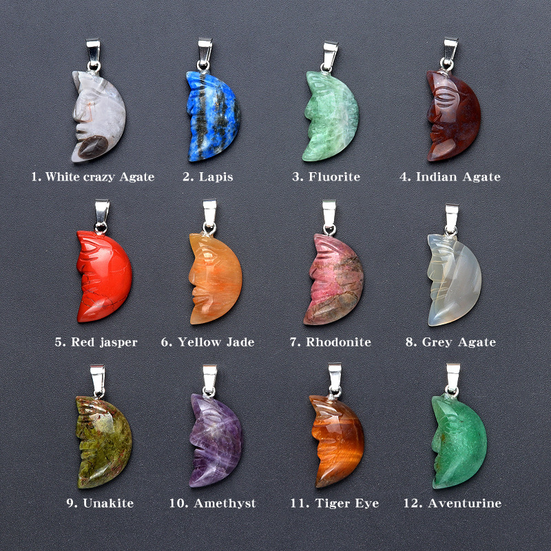 Лицо Луна Натуральный хрустальный камень с одной изогнутой поверхностью резная луна подвеска DIY ювелирные изделия трансграничный Хэллоуин оптом