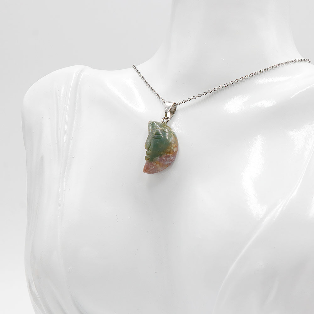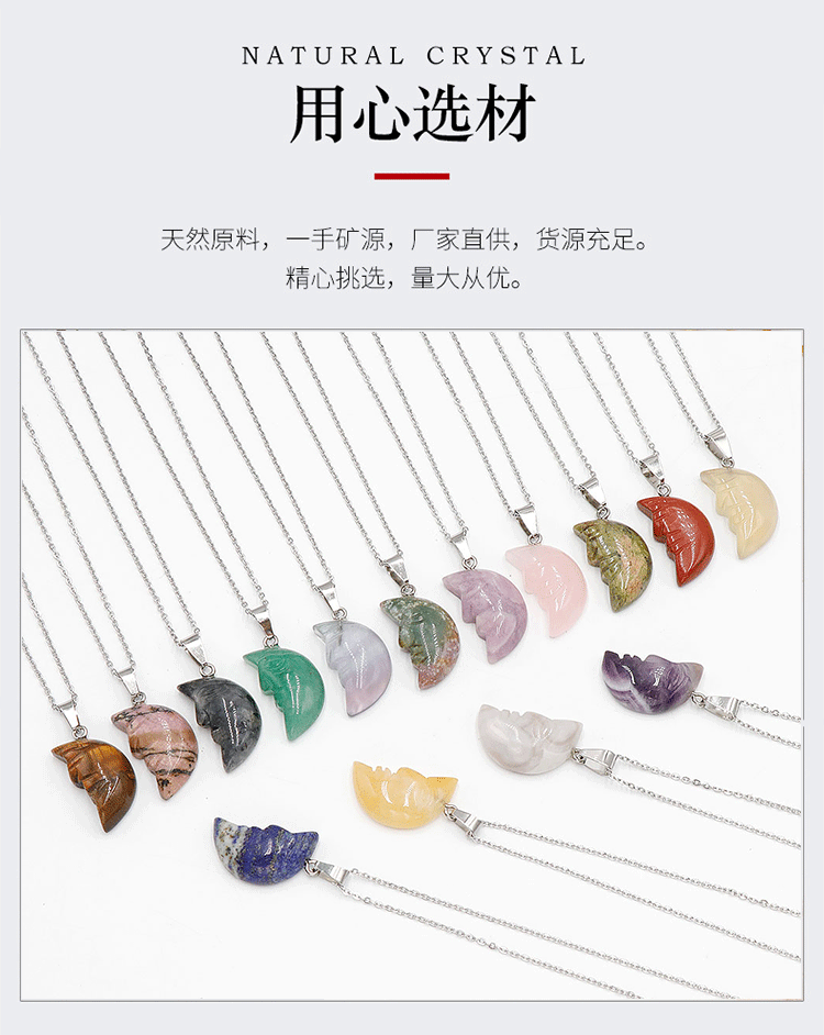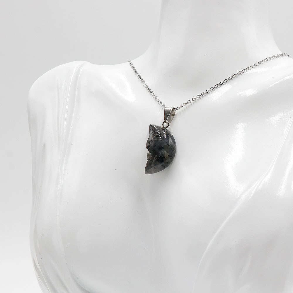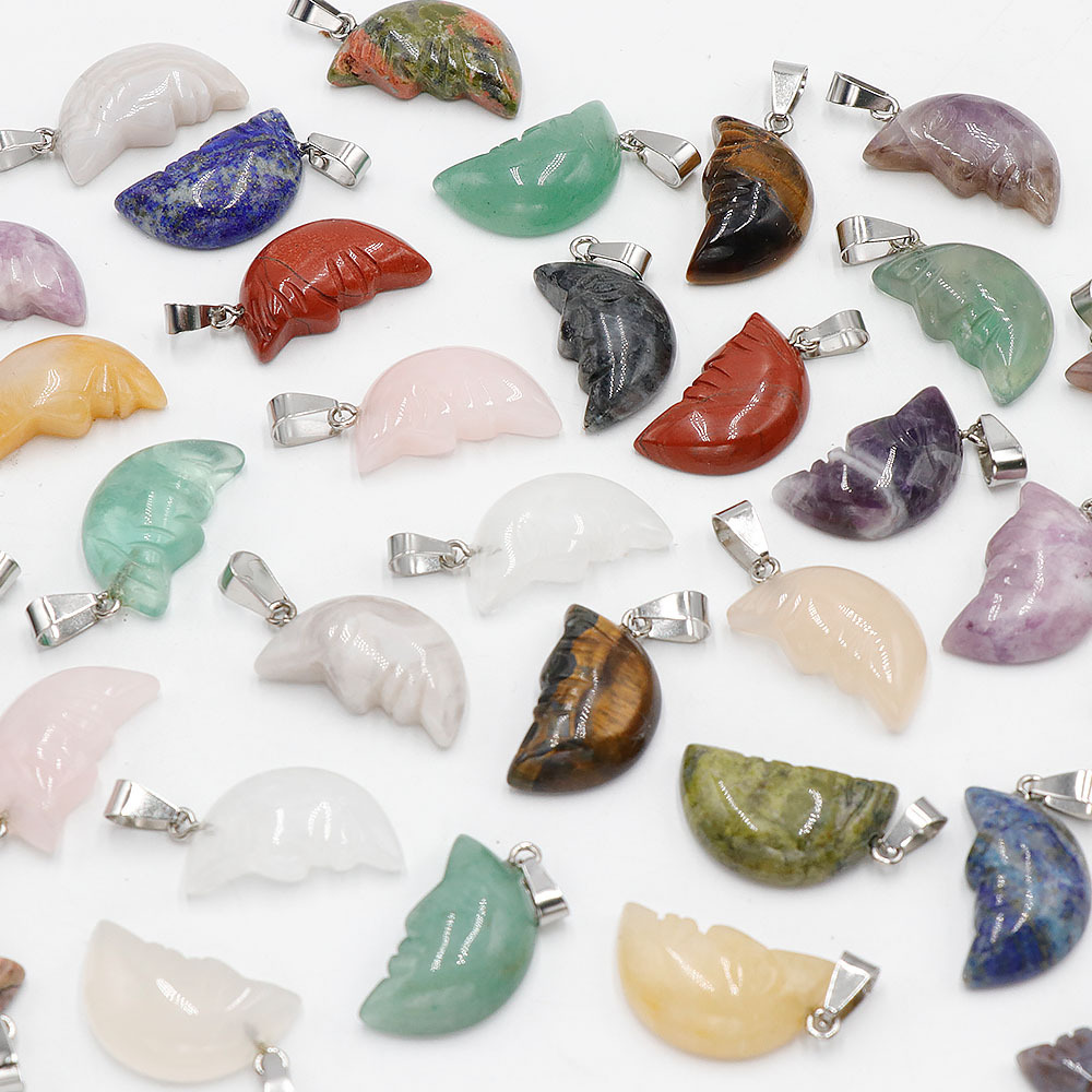 Лицо Луна Натуральный хрустальный камень с одной изогнутой поверхностью резная луна подвеска DIY ювелирные изделия трансграничный Хэллоуин оптом