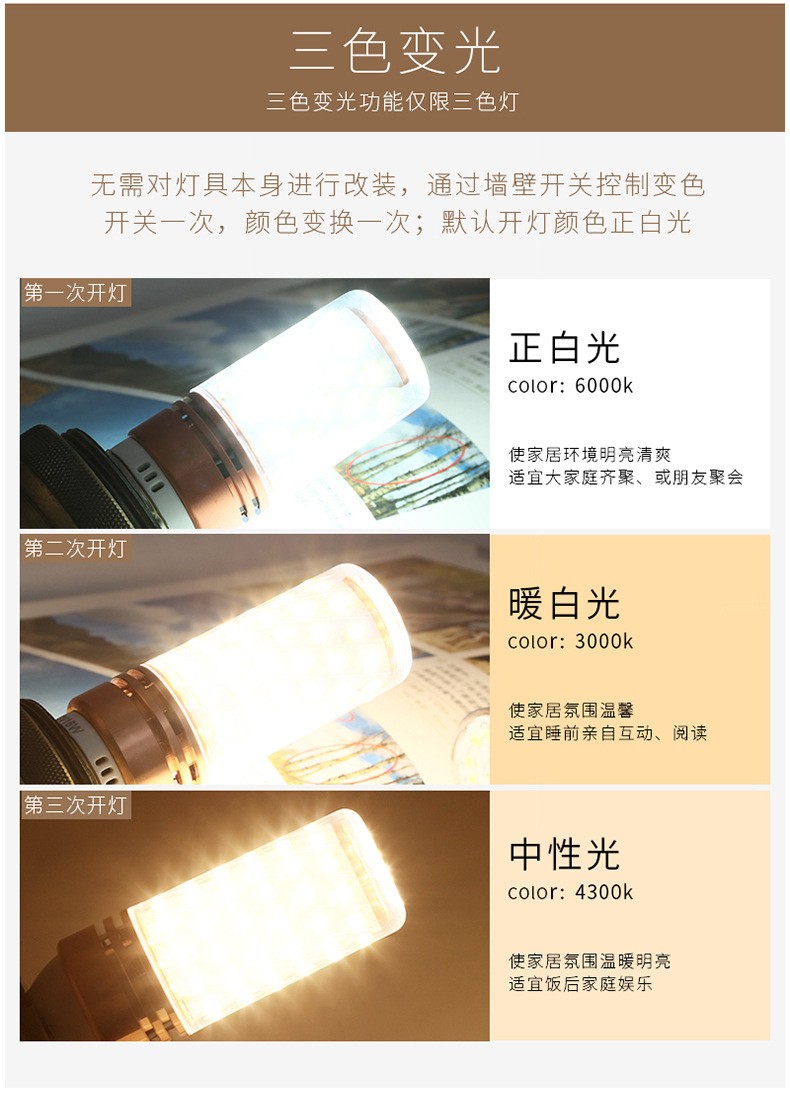 Белый свет [Экономическое сопротивление]; Теплый свет [экономия сопротивления]; Нейтральный свет [экономия сопротивления]; Трехцветное изменение света [экономия сопротивления]; Белый свет [постоянный поток без стробоскопов]; Теплый свет [постоянный поток без стробоскопов]; Нейтральный свет [постоянный поток без стробоскопического]; Трехцветное изменение света [постоянный поток без вспышки]
