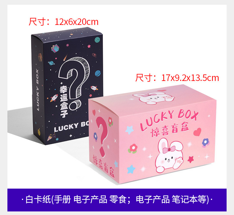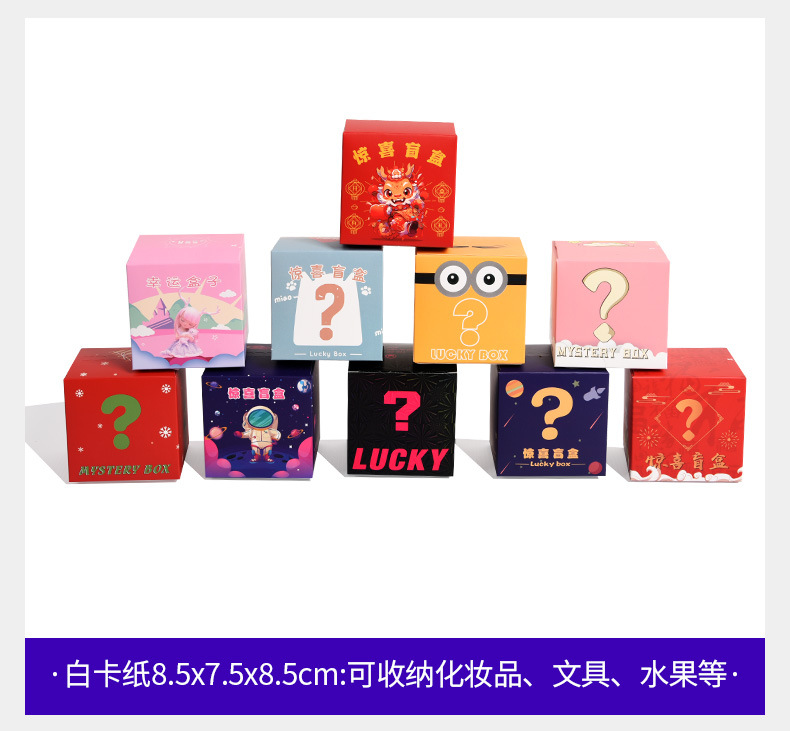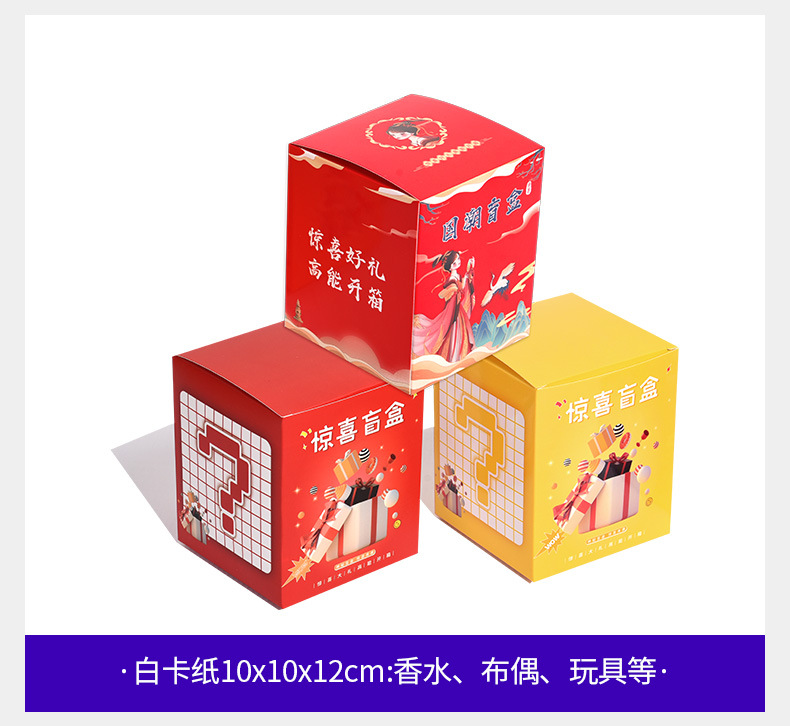 Слепая коробка; красный пони 5*5*8см; кусок; Слепой ящик; вселенная 12*6*13,4 см;; слепой ящик; вопросительный знак 12х6х20см; каждый; Слепой ящик; красный текст 10*10*12см;; Слепой ящик; лазерный текст 6*6*10см; каждый; Слепой ящик; Сяолунрен 6*6*10 см;; Слепой ящик; лазерный космонавт 6*6*10см;; Слепой ящик; зеленый 7*7*12см;; Слепой ящик; желтый 7*7*12см;; Слепой ящик; красный 7*7*12см;; Слепой ящик; Капибала 8,5*7,5*8,5см;; Слепой ящик; принцесса 8,5*7,5*8,5 см;; Слепая коробка; красный пони 8,5*7,5*8,5см; кусок; Слепой ящик; розовый кролик 8,5*7,5*8,5 см;; Слепая коробка; Гун Си Фа Цай 10*10*12см; кусок; Слепая коробка; красный пони 10*10*12см; кусок; Слепая коробка; 5 Фу 10*10*12 [Оторвать]; куски; Слепой ящик; сюрприз красный 10*10*12см;; Слепой ящик; сюрприз желтый 10*10*12см;; Слепой ящик; сюрприз красный 15*15*15;; Слепой ящик; сюрприз красный 25*25*25см;; Слепой ящик; Сяо Хуанрен 5*5*8 см;; Слепой ящик; лазерный текст 5*5*8см;; Слепой ящик; золотая змея 6*6*10см;