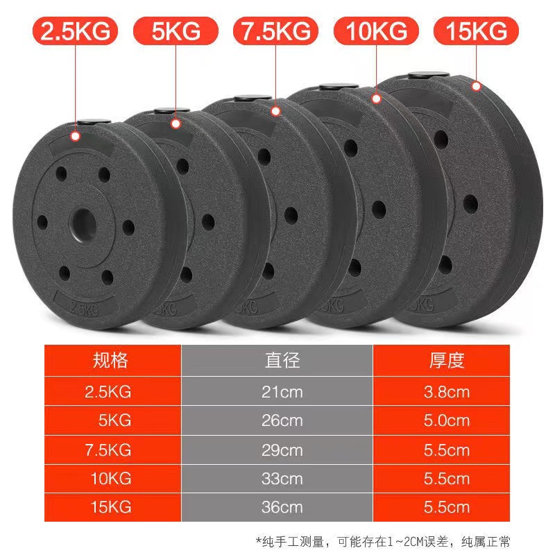Черные экологически чистые гантели и штанги, подходящие для стержней с малым диаметром отверстий, цементных противовесов и пластин с песочным наполнением.