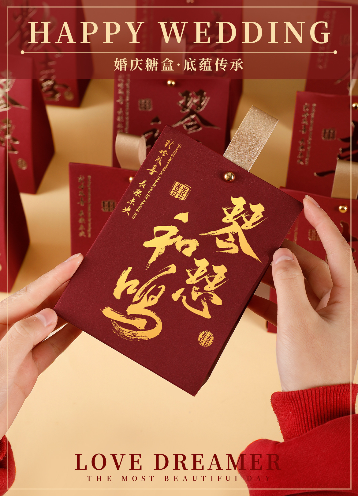 Набор свадебных конфет в китайском стиле в готовой подарочной коробке с конфетами, высококачественный свадебный сувенир с золотым тиснением.