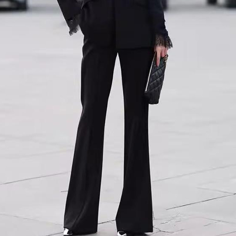 черное пальто; черные брюки; Черная куртка в стиле Chanel; Черная куртка + черные брюки